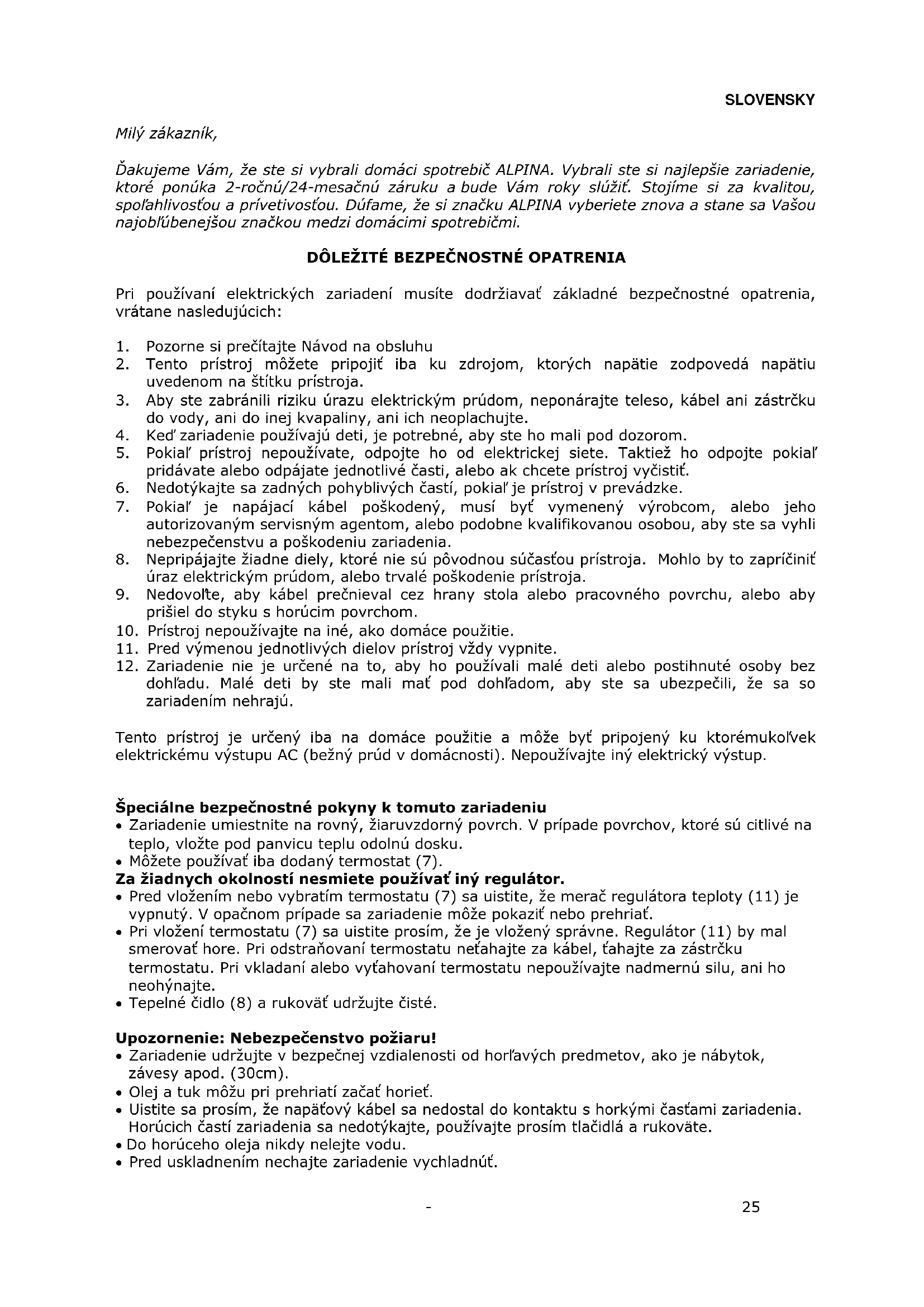 Dakujeme Vám, ze ste si vybrali domáci spotrebič ALPINA. Vybrali ste si majlepsie zariadenie, ktoré ponúka 2-ročné/24-mesačné záruku a bude Vám roky slúžit. Stojíme si za kvalitou, spožahlivostou a privetivostou. Dufame, ze si značku ALPINA vyberiète znova a stane sa Vašou najoblúbenejšou značkou medzi domácimi spotrebičmi.