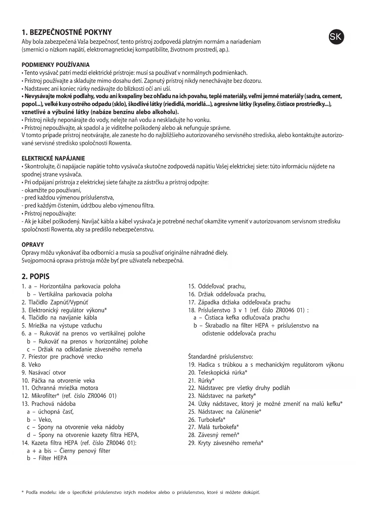- Pred prvým použitím prístroja si pozorne prečítajte návod na použitie: používanie, ktoré nie je v súlade s návodom na použitie, zba- vuje spoločnosť Rowenta akejkoľvek zodpovednosti.