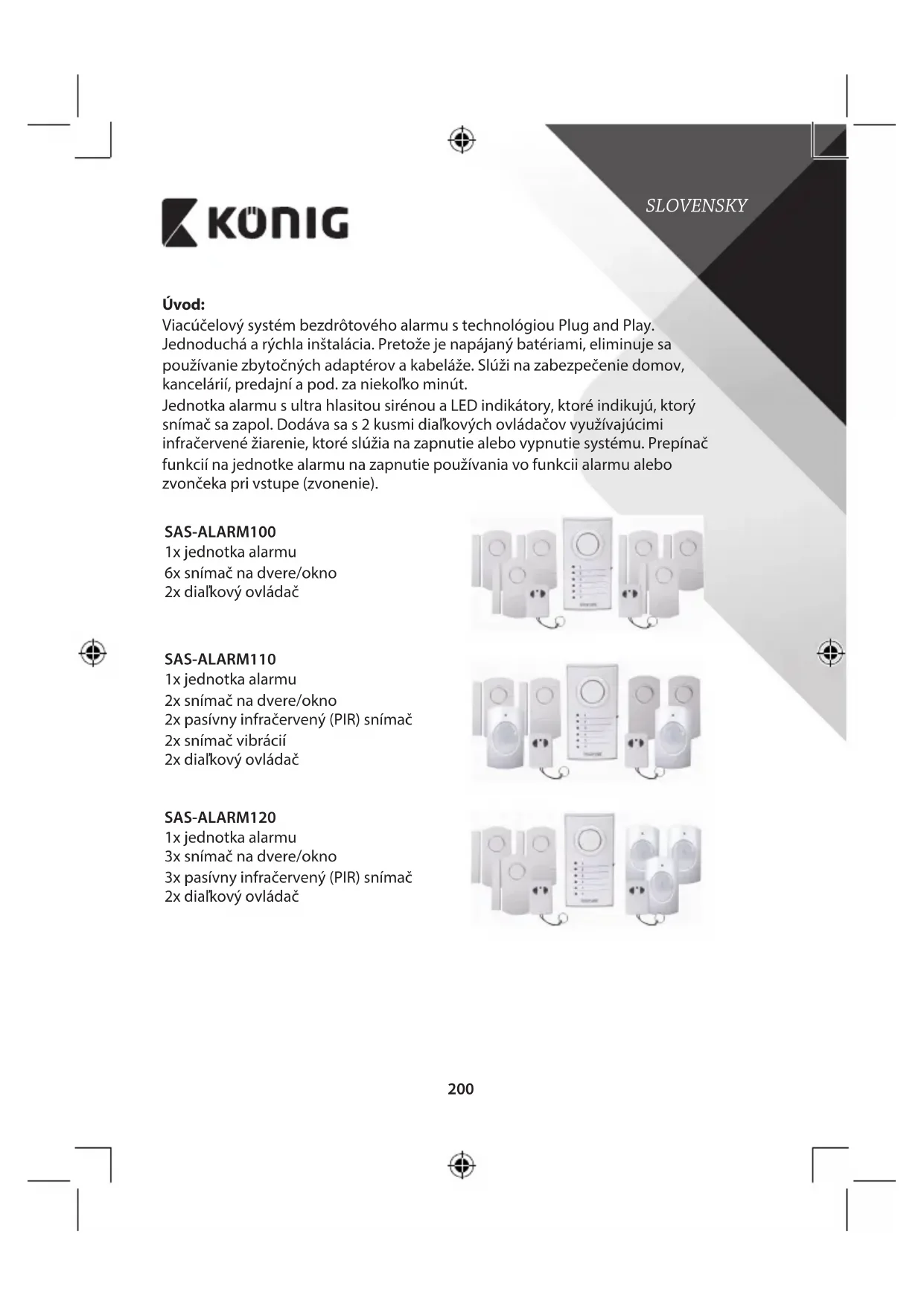 SASALARM120 - Alarmový systém KONIG - Bezplatný návod na obsluhu