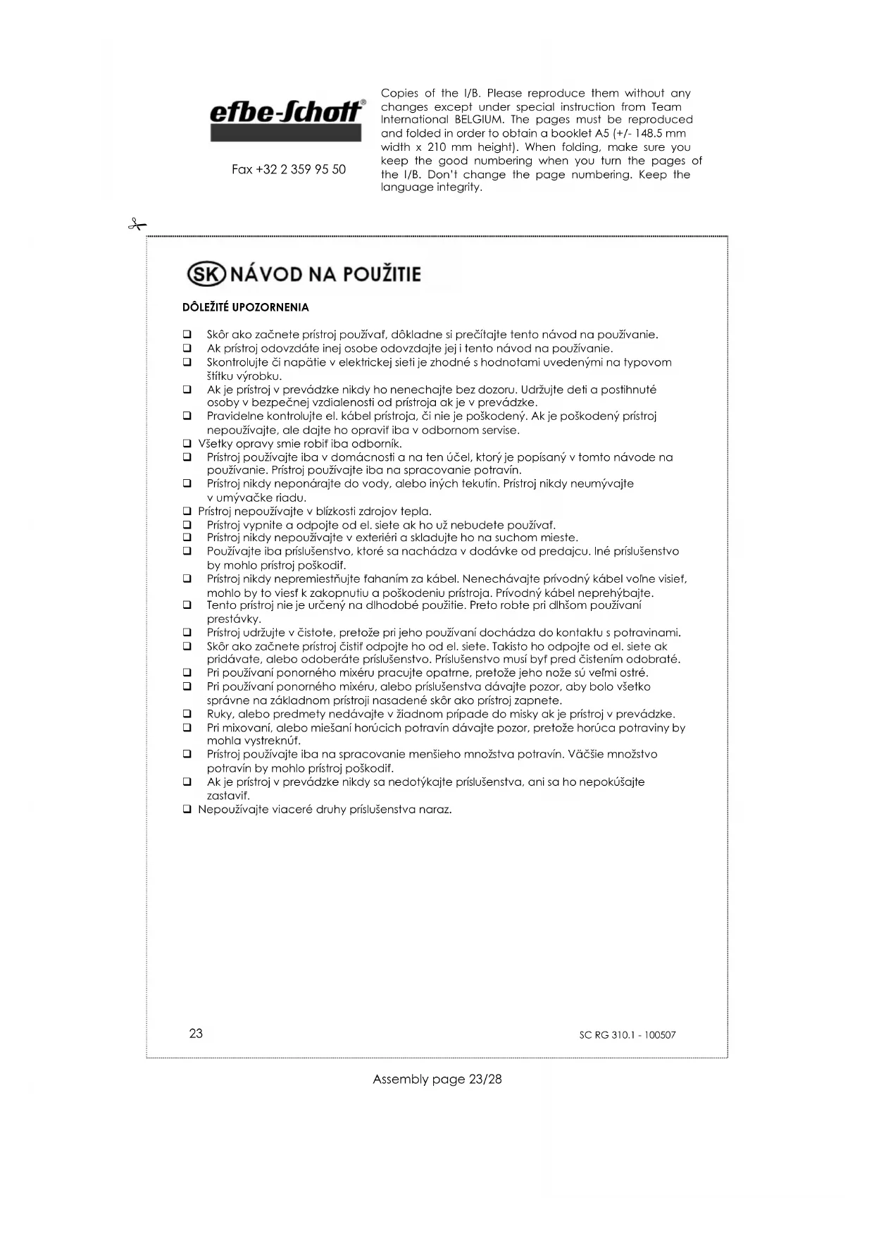 NÁVOD NA OBSLUHU RG 310.1 Efbe-Schott