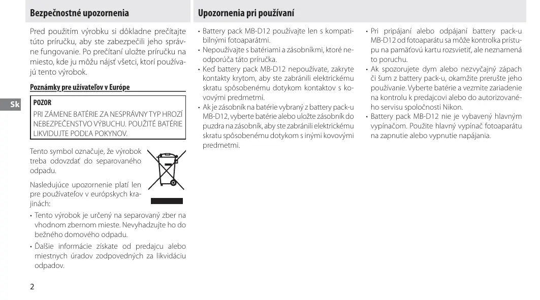 NÁVOD NA OBSLUHU MB-12 NIKON