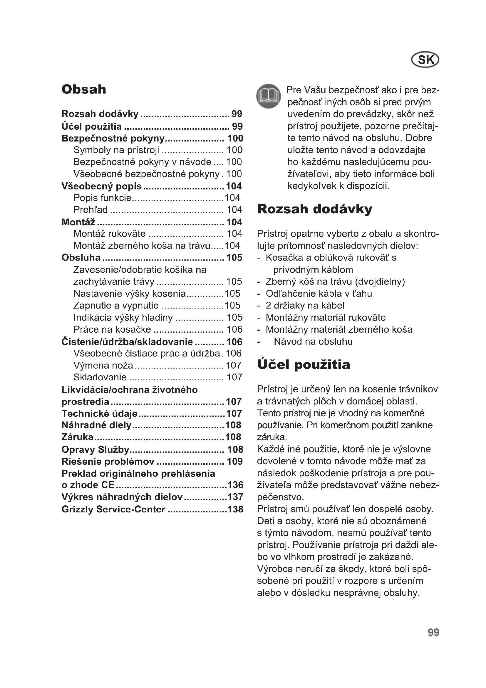 - Na poskodenia, ktoré suvisia s prirodzenym opotrebovanim, pretažením alebo neodbornou obsluhou, sa záruka nevztahuje. Určité konštrukné suciastky podliehajú normalnemu opotrebovaniu a záruka sa na ne nevztahuje. Patr sem hlavne nož.