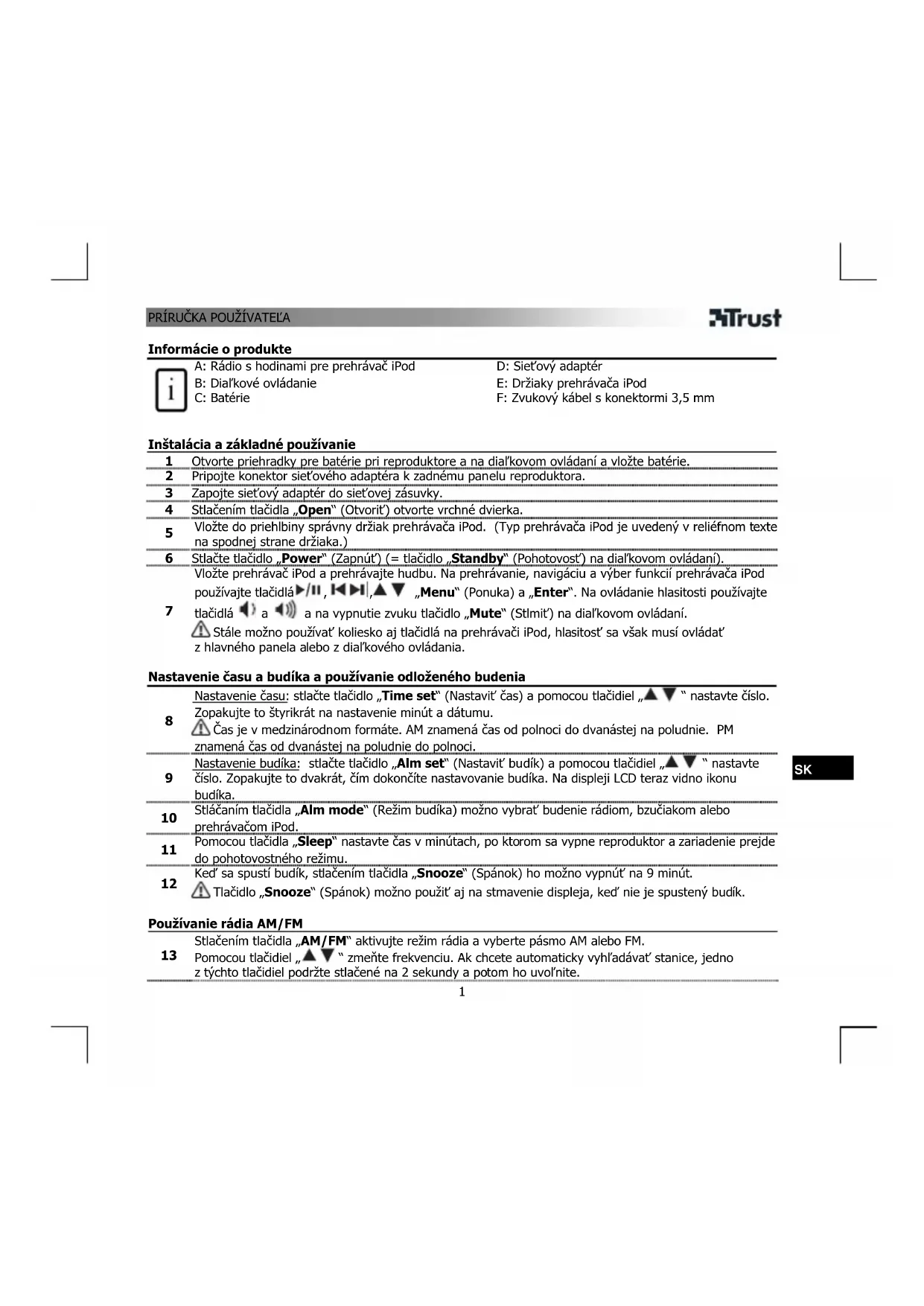 SP2993Wi - Rádiobudík TRUST - Bezplatný návod na obsluhu