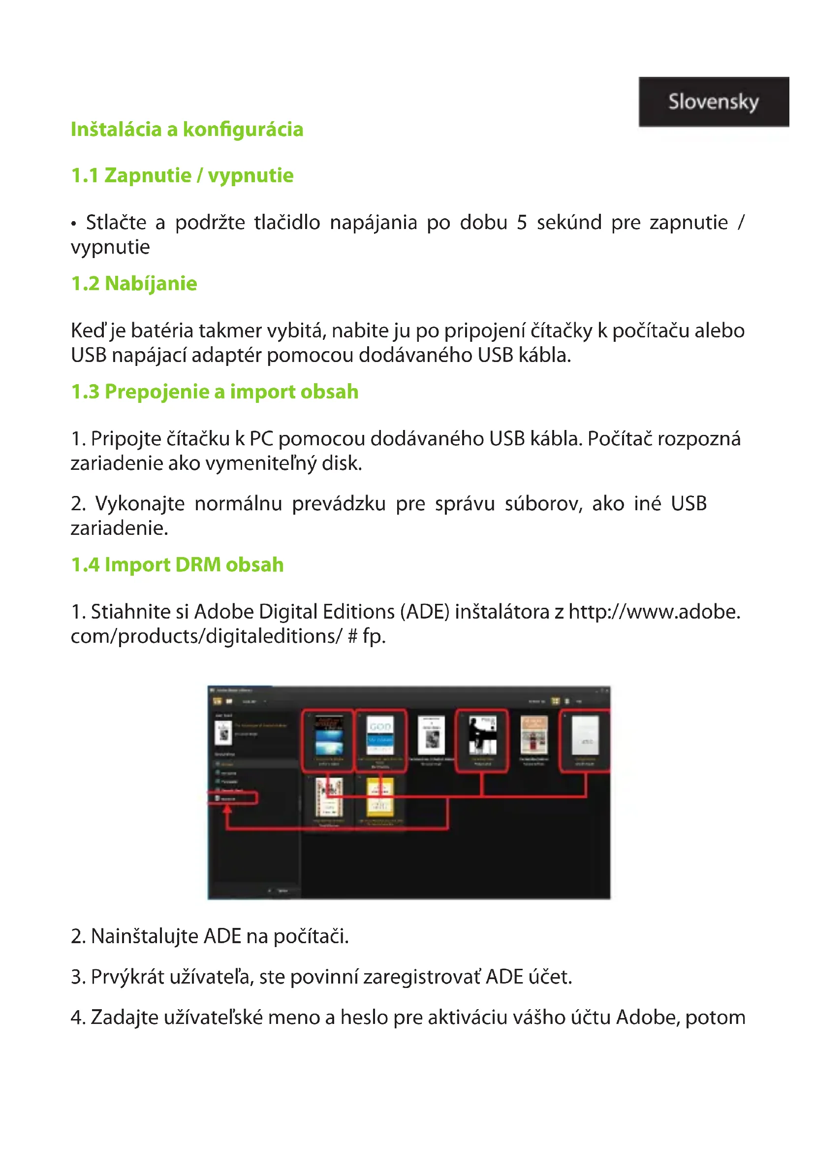 4. Zadajte užívateľské meno a heslo pre aktiváciu vášho účtu Adobe, potompripojte čítačku k počítaču.