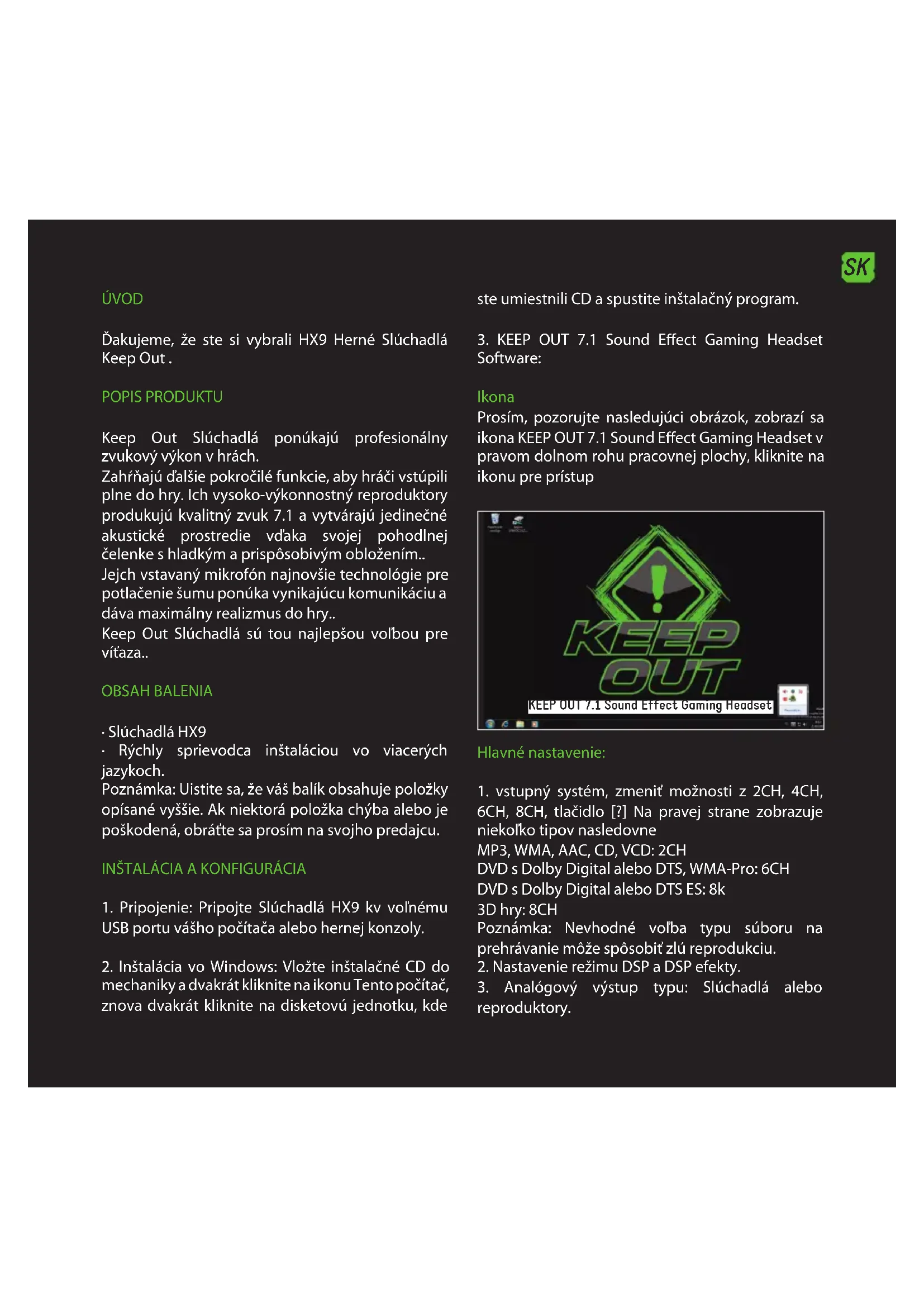 Đakujeme, že ste si vybrali HX9 Herné Slúchadlá Keep Out.