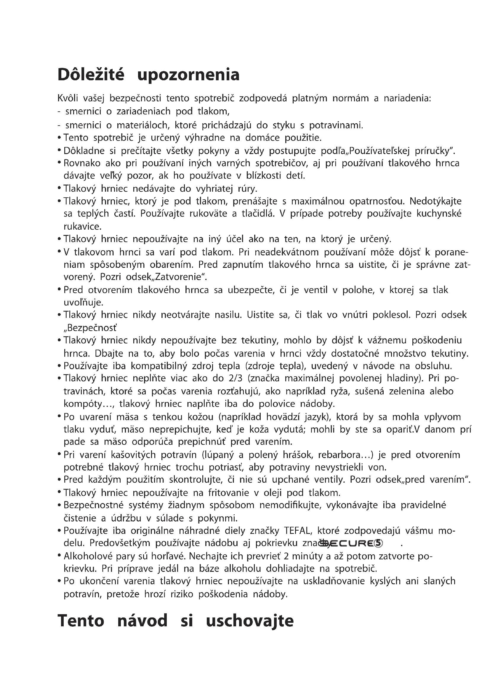 NÁVOD NA OBSLUHU Secure 5 P2500732 TEFAL