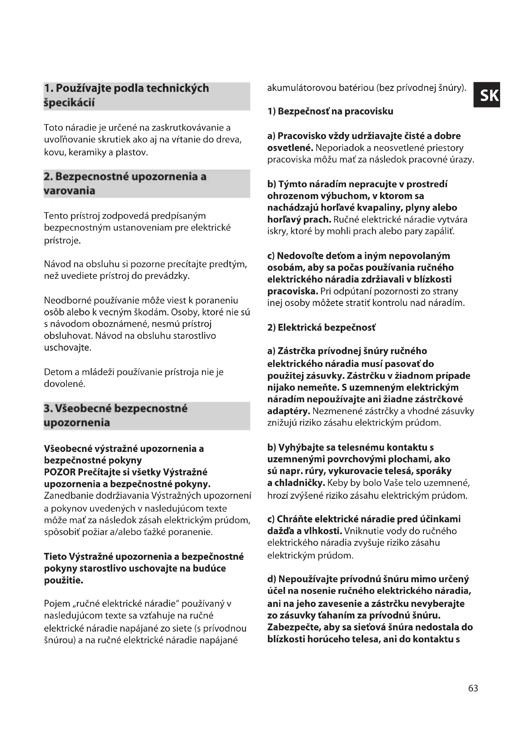 Pojem "ručné elektrické náradie" používaný v nasledujúcom texte sa vztahuje na ručné elektrické náradie napájané zo siete (s privodnou snúrou) a na ručné elektrické náradie napájané