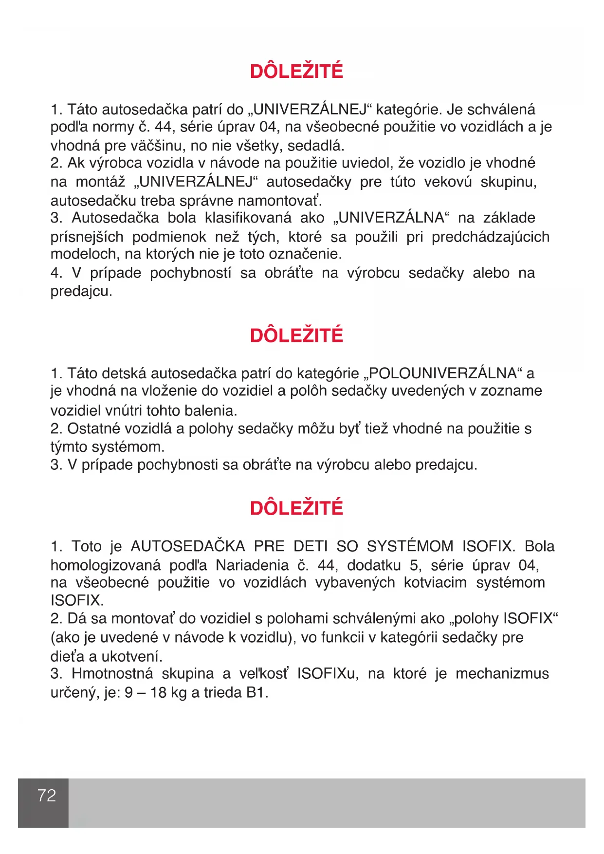 3. Autosedačka bola klasikovaná ako „UNIVERZÁLNA“ na základe