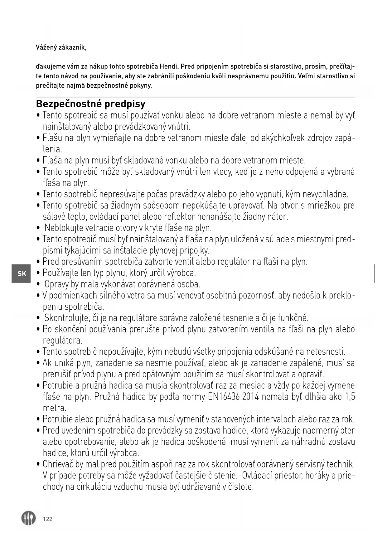 - Pre pokyny o používaní plynovej fľaše sa obráťte na vášho dodávateľa.