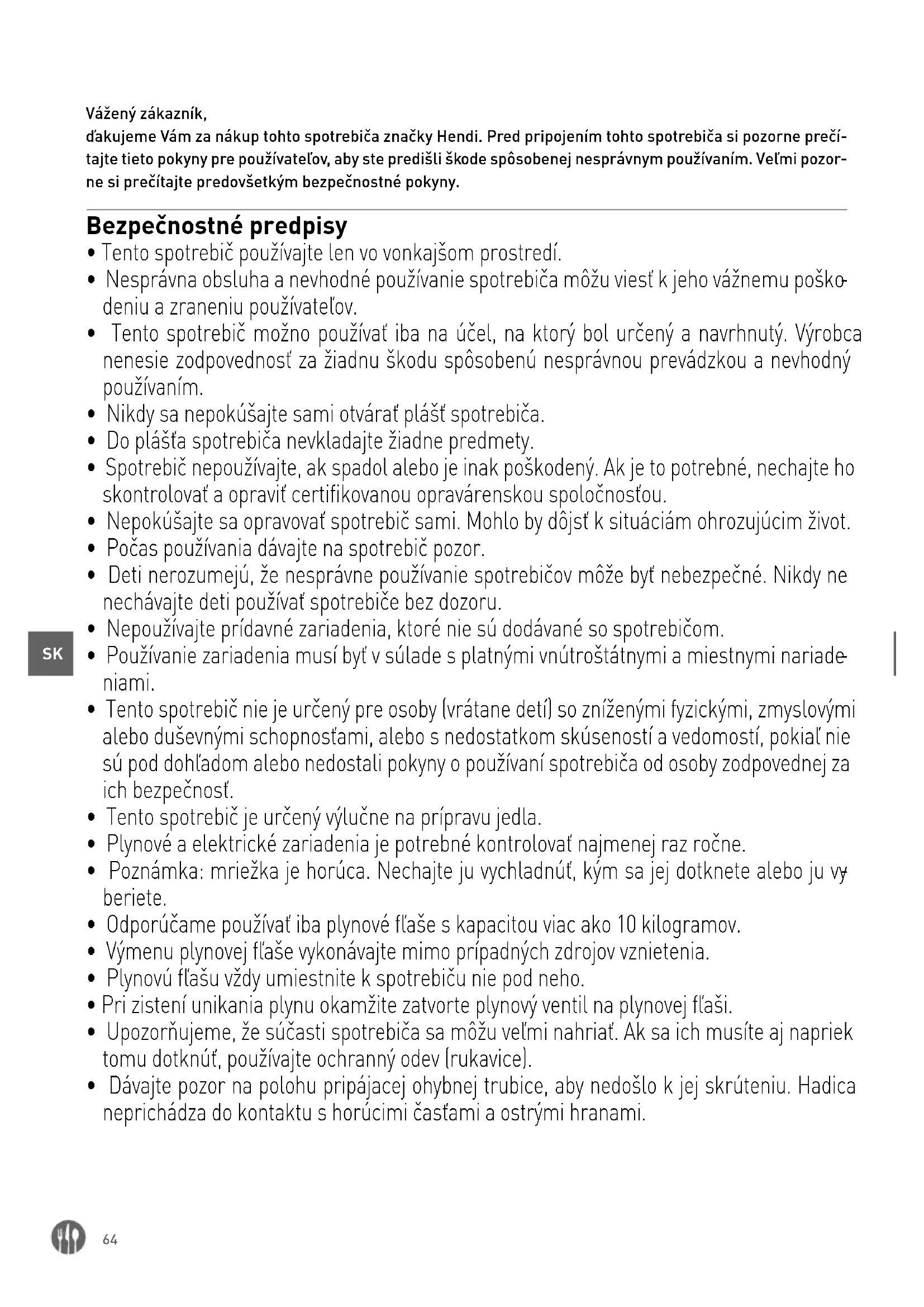 Vážený zákazník, ďakujeme Vám za nákup tohto spotrebiča značky Hendi. Pred pripojením tohto spotrebiča si pozorne prečí- tajte tieto pokyny pre používateľov, aby ste predišli škode spôsobenej nesprávnym používaním. Veľmi pozor- ne si prečítajte predovšetkým bezpečnostné pokyny. Bezpečnostné predpisy