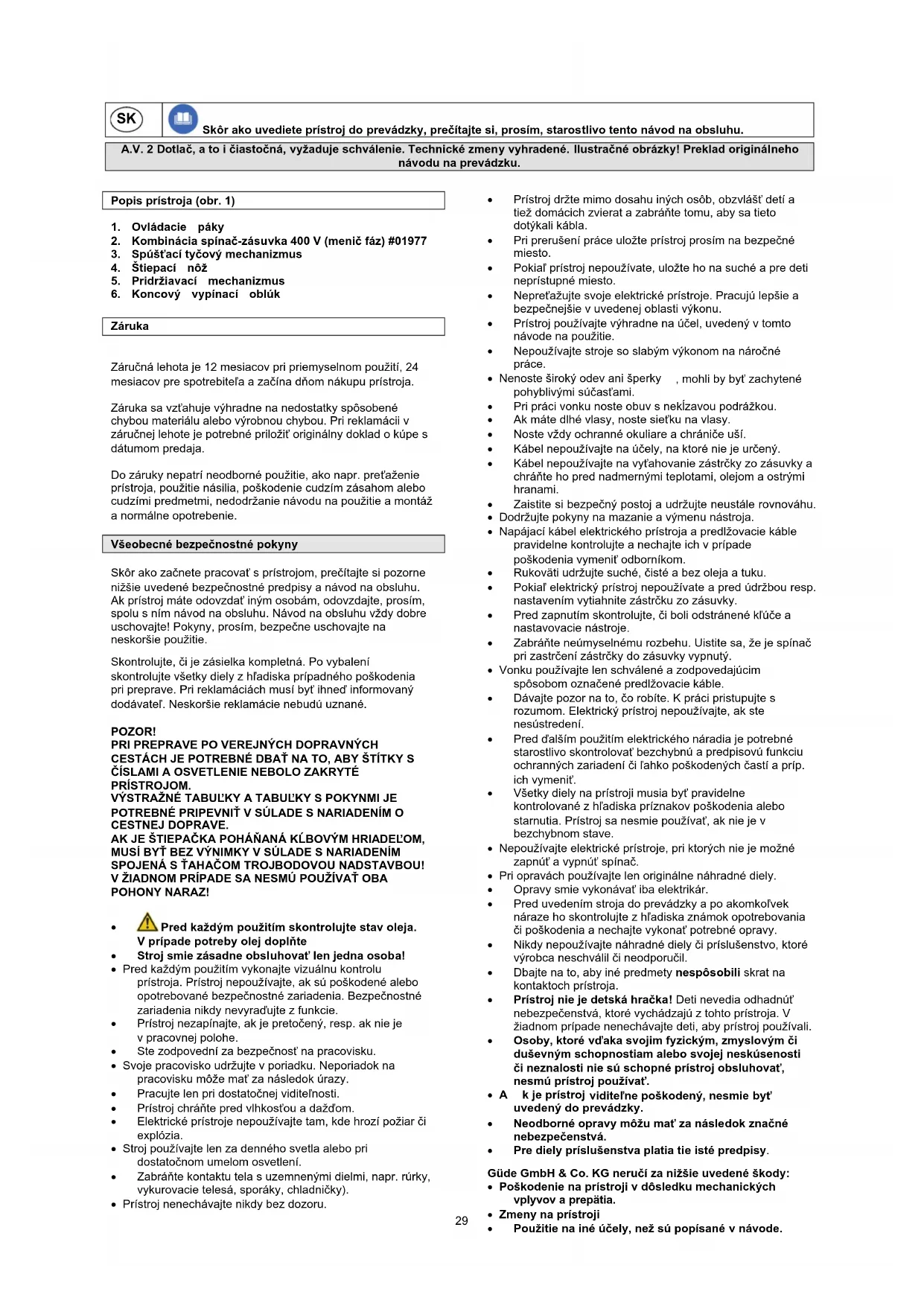 Pred d'alsim pouzitim elektrického náradia je potrebné starostlivo skontrolovat bezchybnu a predpisov fungciu ochrannych zariadeni Č fahko poskodenych ěcasti a prip. ich vymenit'.