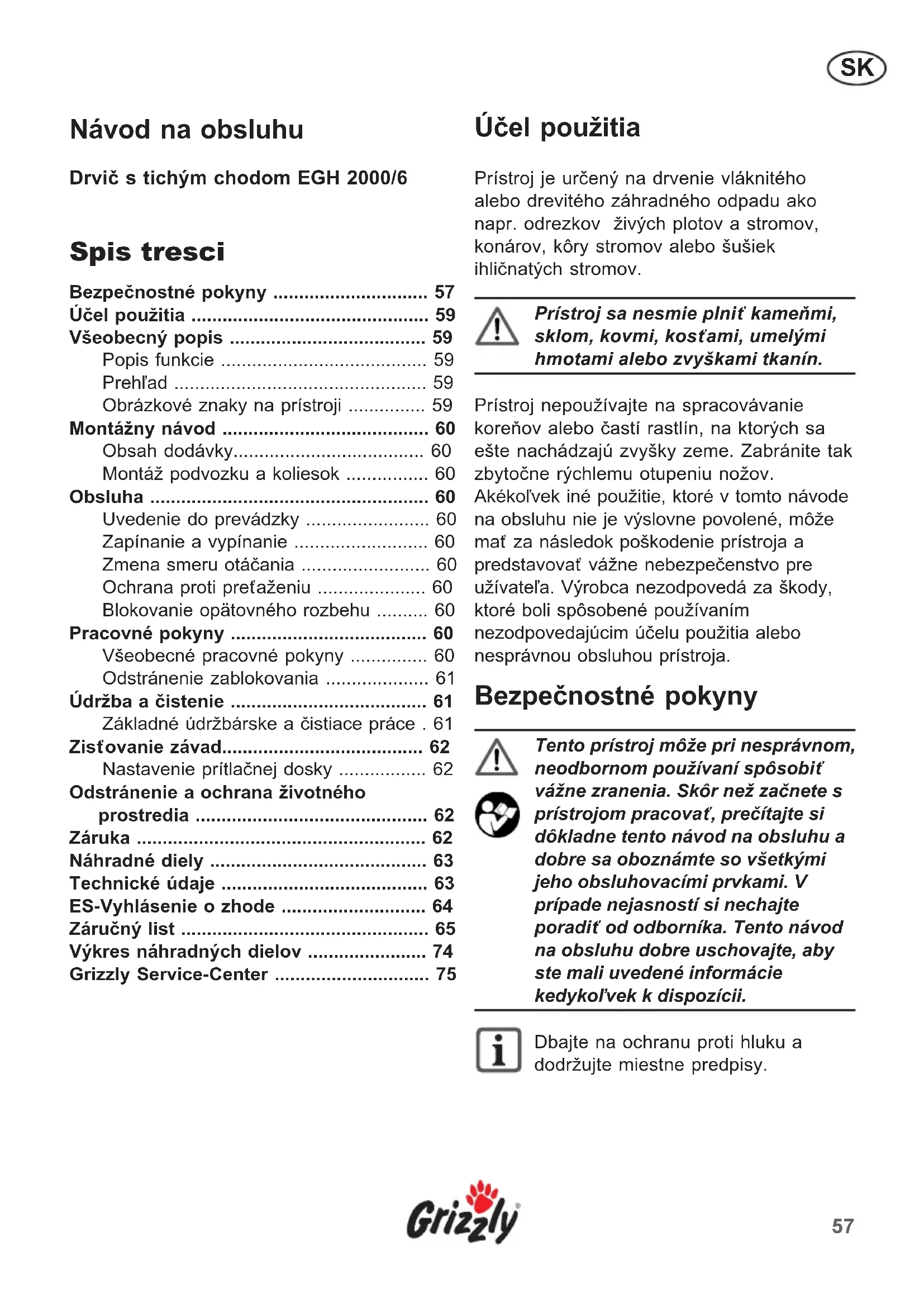 EGH 20006 - Mechanický štiepkovač Grizzly - Bezplatný návod na obsluhu