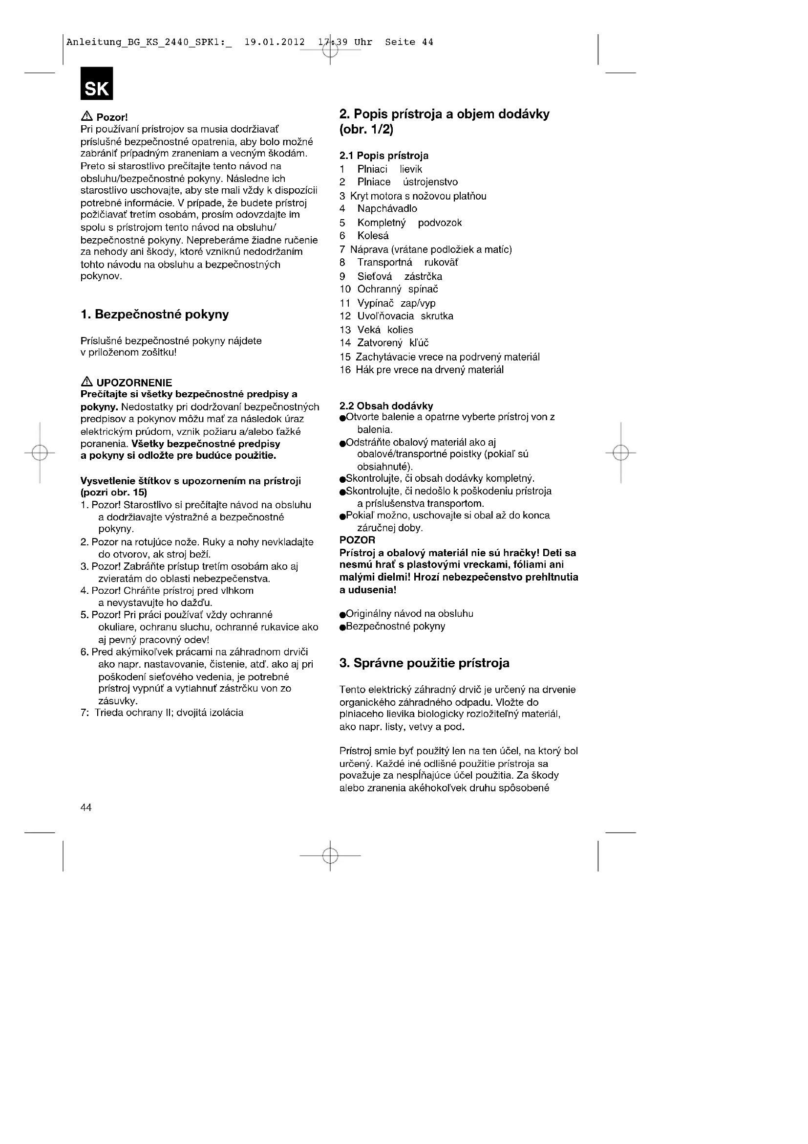 - Pozor! Starostlivo si prečitajte námov na obsluhu a dodržiavajte výstrázné a bezpečnostné poukyny.