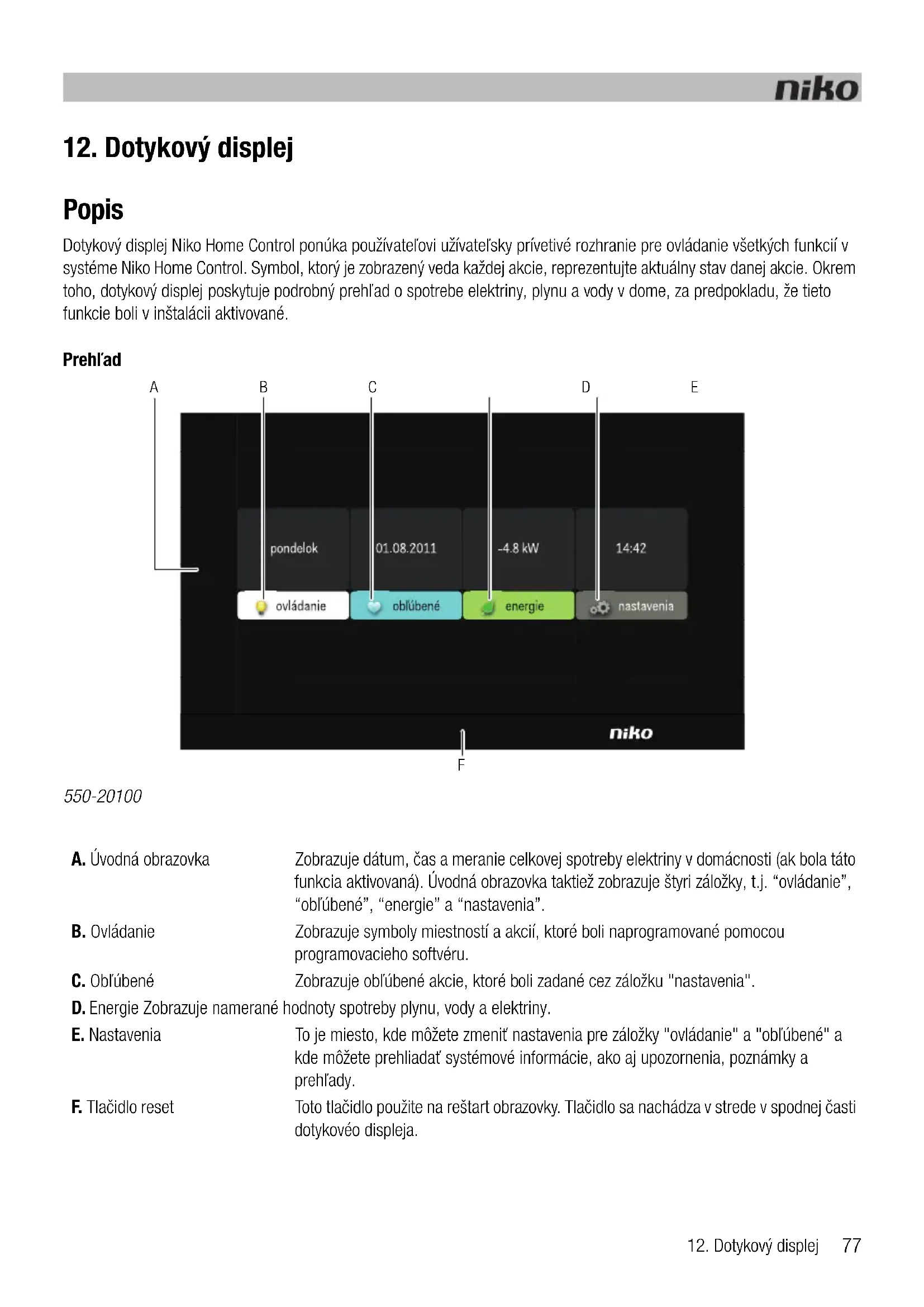 A B C D E pondelok 01.08.2011 -4.8 kW 14:42 ovládanie oblúbené energie nastavenia F niko550-20100