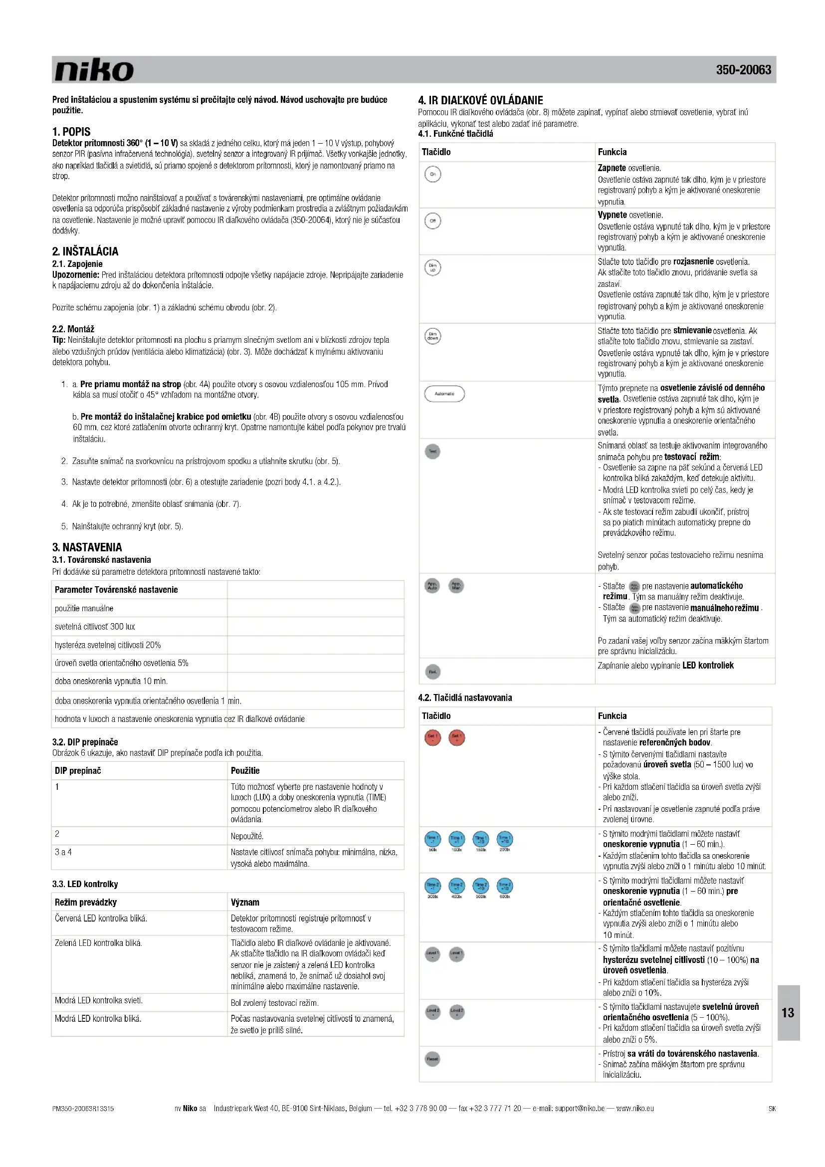 Tento námod musi byt odovzdan yuzvatefovi. Musi byt suacastou dokumentácie o elektrickej instalaci a musi byt odovzdan kazdému novénu užvatefovi. Dalsie kópie námodu su dostupné na web stranke Niko alebo cez služov zázakznikom. Najnoví námod na instalaci zuhto vyrobku je k dispozici na internetovych strankach Niko.