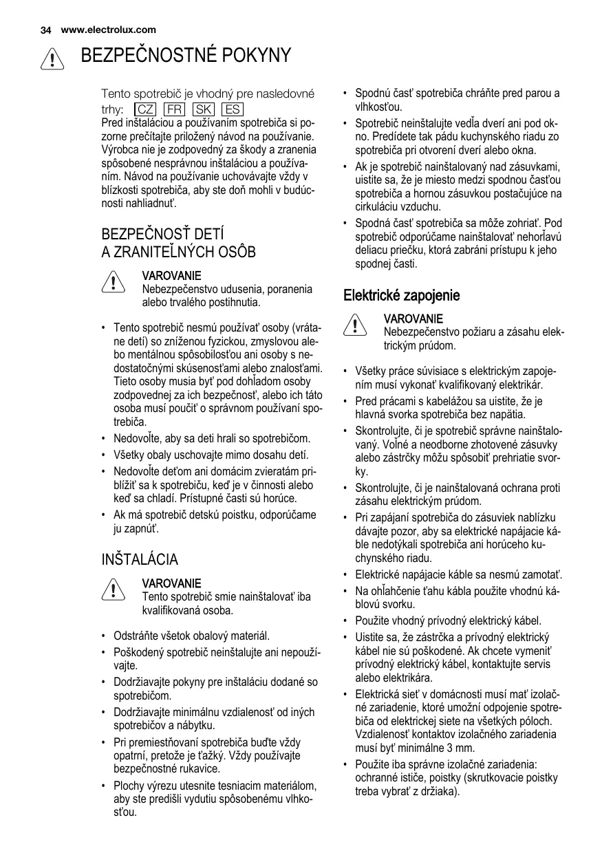 Tento spotrebič je vhodný pre nasledovné trhy: CZ FR SK ES