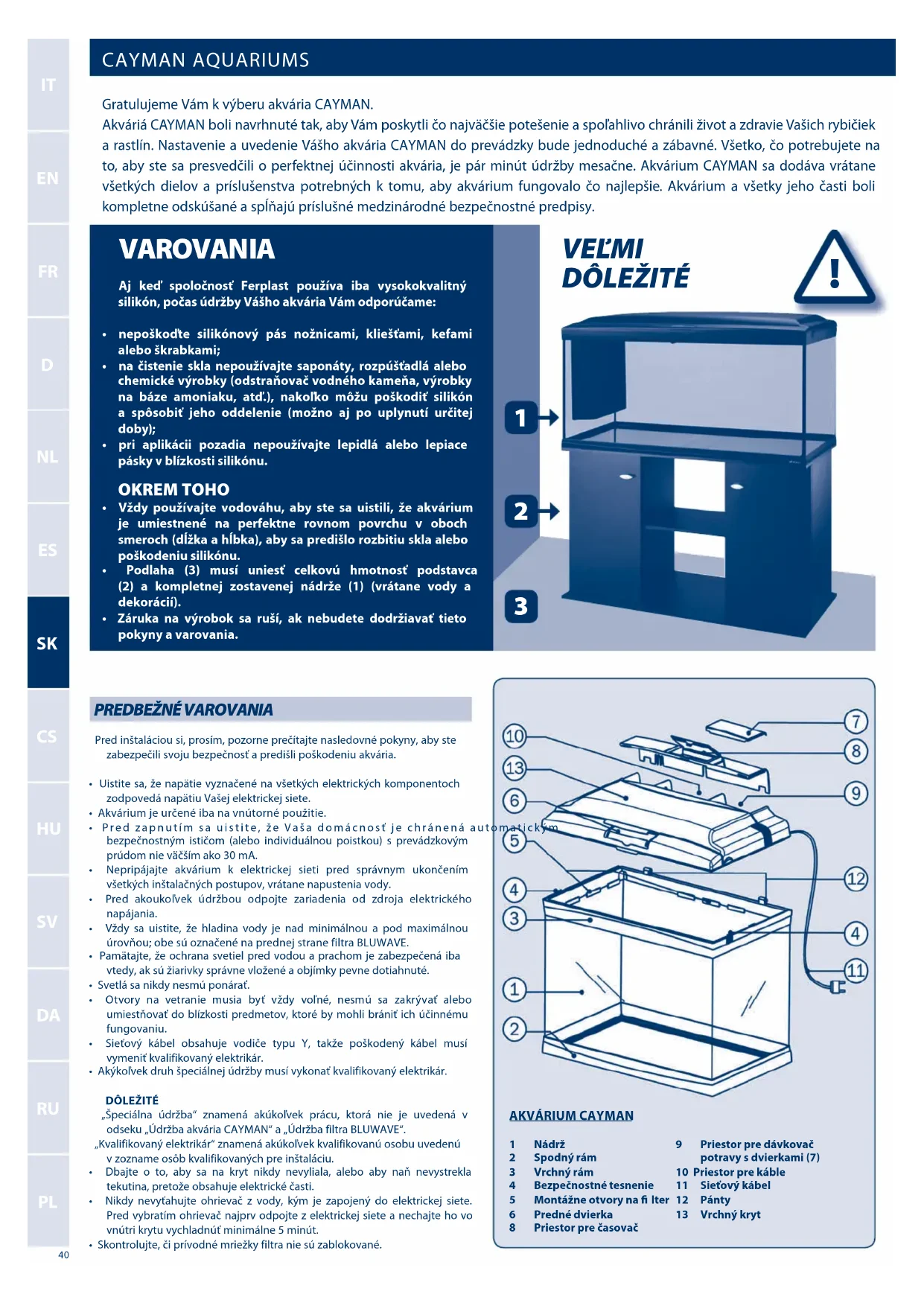 Akvaria CAYMAN boli navrhnute tak, aby Vam poskytli co najvacsie potesenie a spolahlivo chraniil zivot a zdrovie Vasich rybiciek a rastlin. Nastavenie a uvedenie Vasho akvaria CAYMAN do prevadzky bude Jednoduché a zabavné. Vsetko, co potrebujete na to, aby ste sa presvedcili o perfektnej učinnosti akvaria, je pár minut udžby mesačne. Akvarium CAYMAN sa dodáva vrátane vsetkych dielov a prislušenstva potrebných k tomu, aby akvarium fungovalo co najlepšie. Akvarium a vsetky jeho Časti boli kompletne odskusane a splnajú prislušné medzinárodné bezpečnostné predpisy.