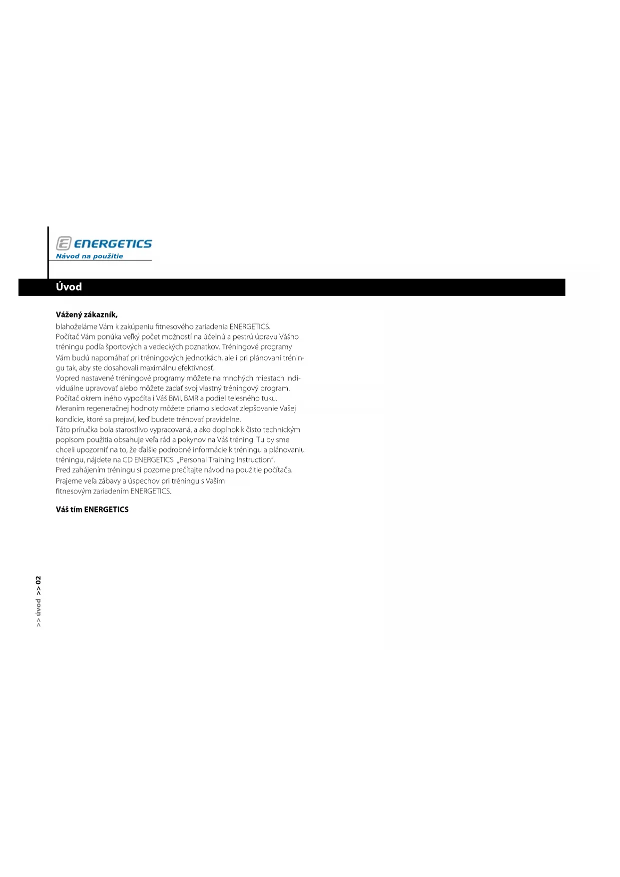 NÁVOD NA OBSLUHU Exercise Monitor E205 Energetics