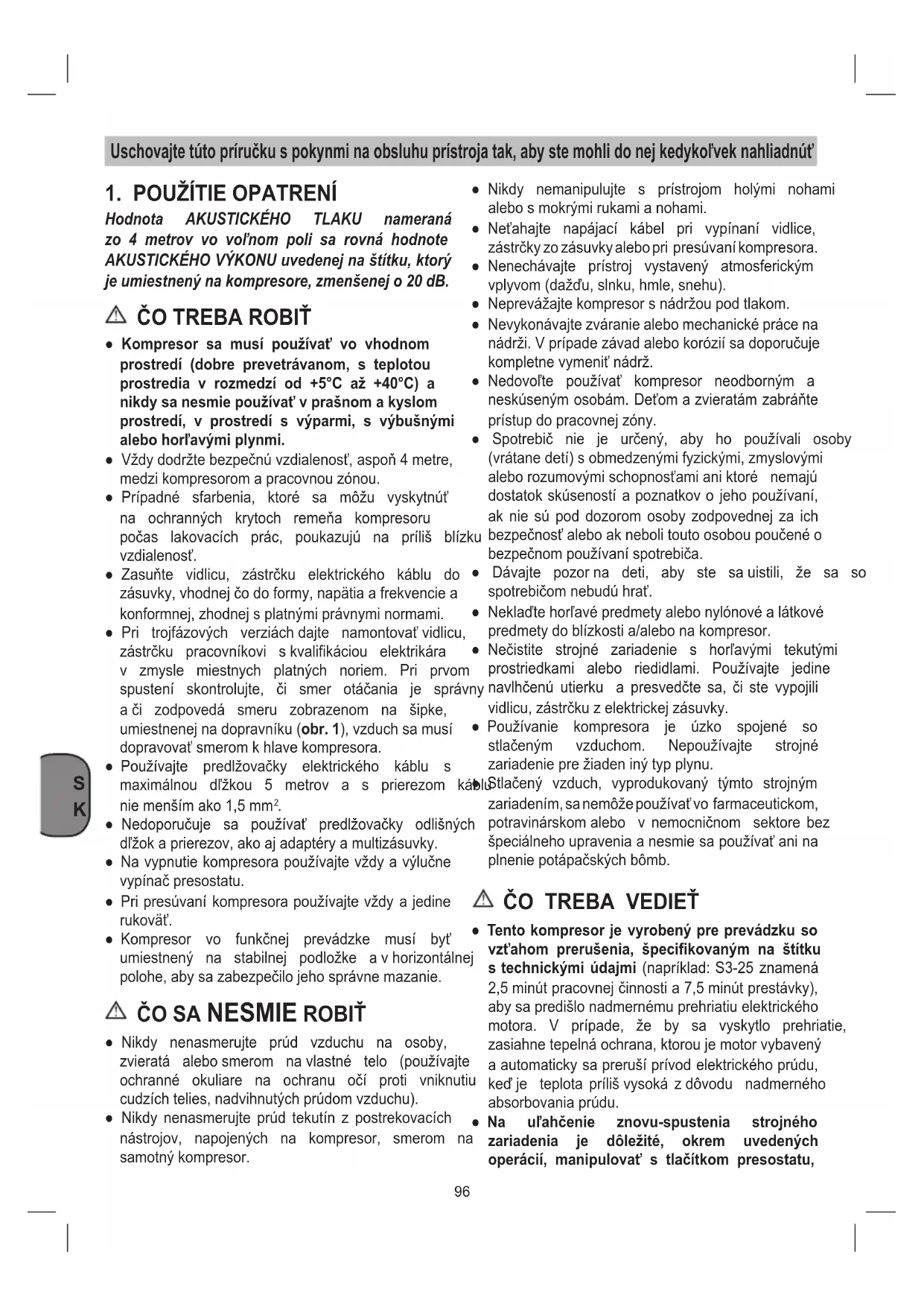 - Nedovol'te používat' kompresor neodborným a neskúseným osobám. Det'm a zvieratám zabrante pristup do pracovnej zony.