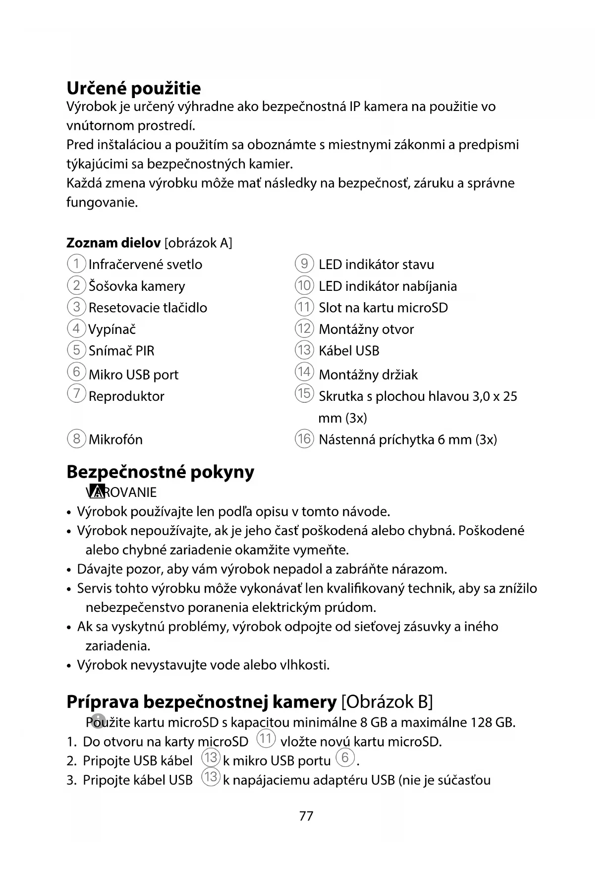 - Výrobok nevystavujte vode alebo vlhkosti. Príprava bezpečnostnej kamery [Obrázok B]