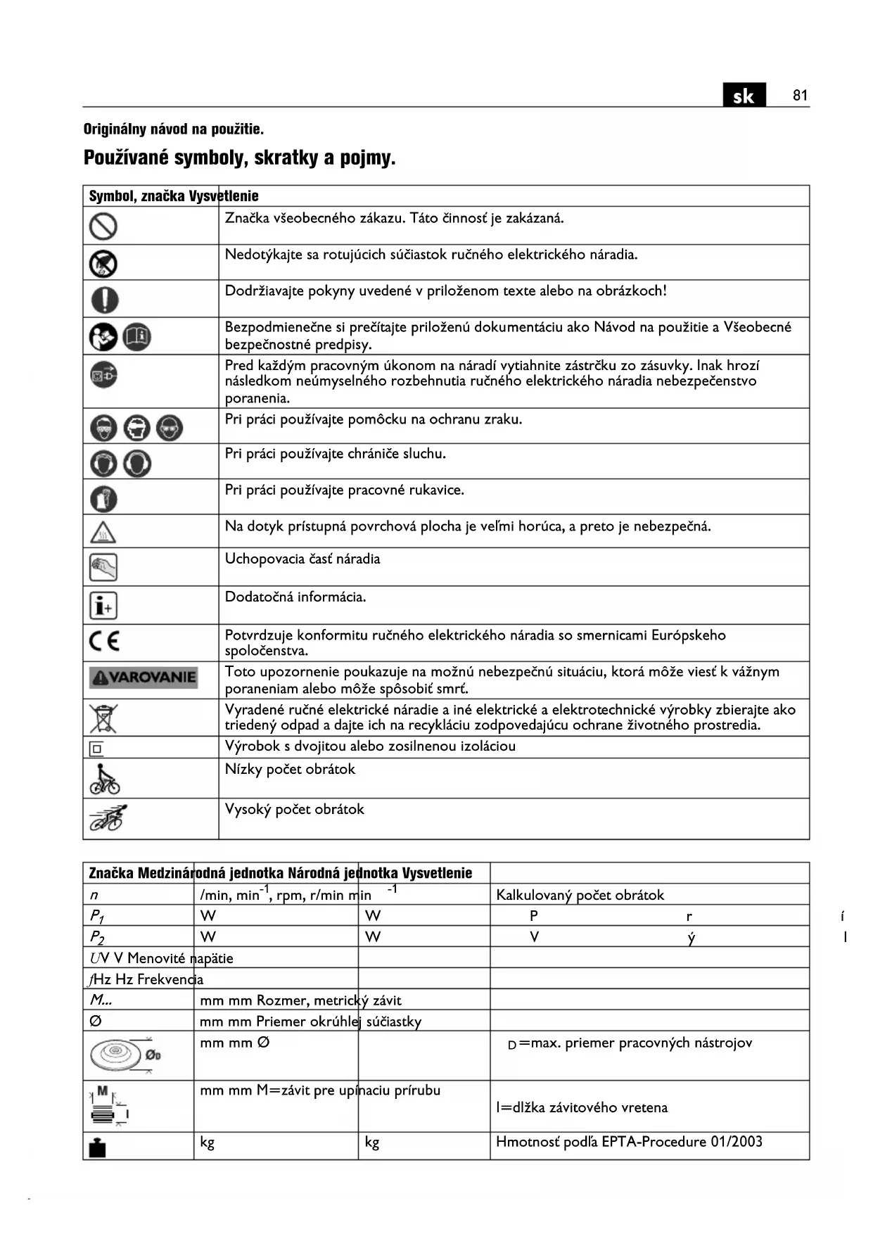 | Vyradené ručné elektrické náradia a iné elektrické a elektrotechnické výrobský zbierajte akо triedený odpad a dajte ich na recykláciu zodpovedajúcu ochrane zhivotného prostrendia. | |