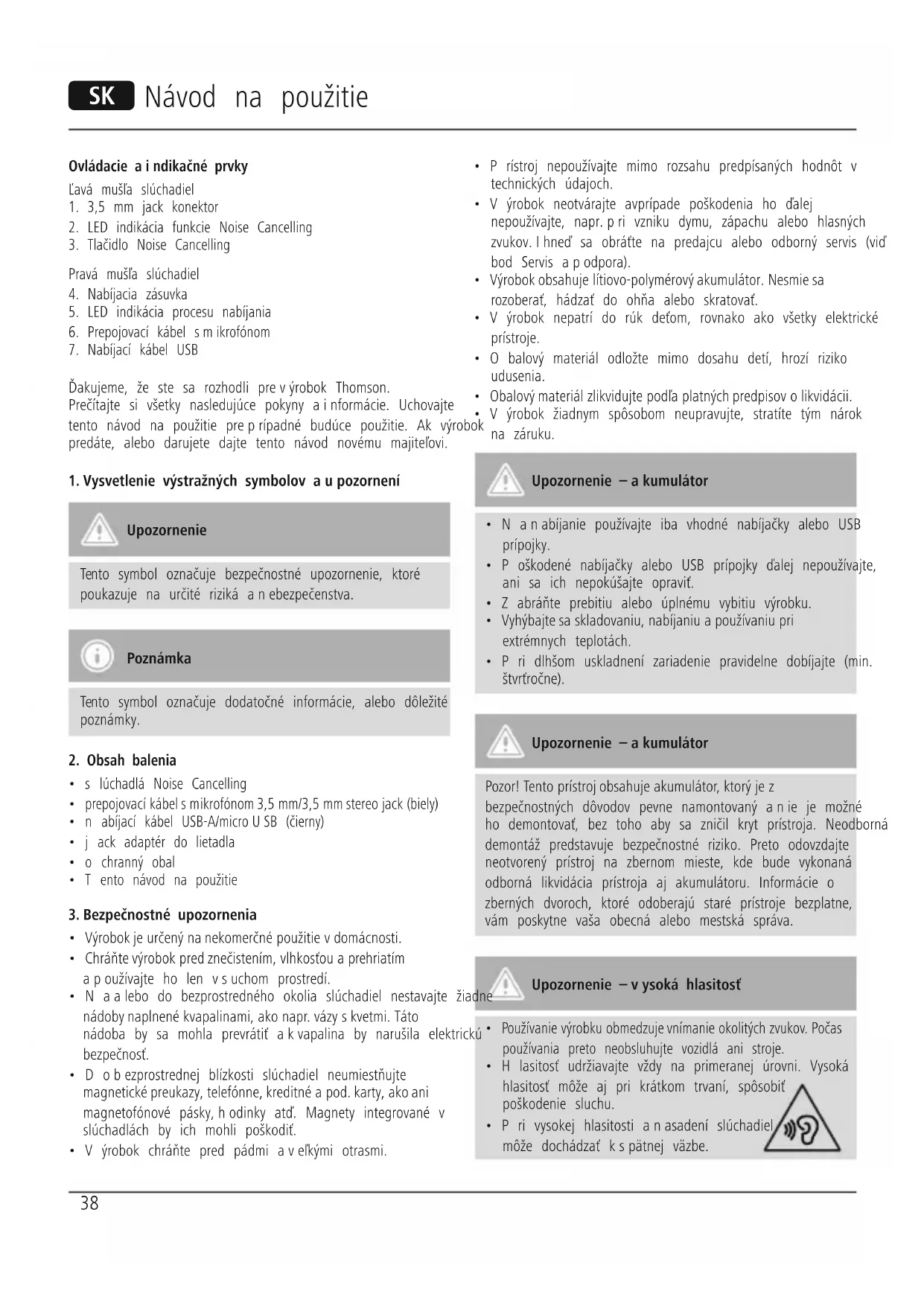 Ďakujeme, že ste sa rozhodli prevýrobok Thomson. Prečítajte si všetky nasledujúce pokyny ainformácie. Uchovajte tento návod na použitie preprípadné budúce použitie. Ak výrobok predáte, alebo darujete dajte tento návod novému majiteľovi.