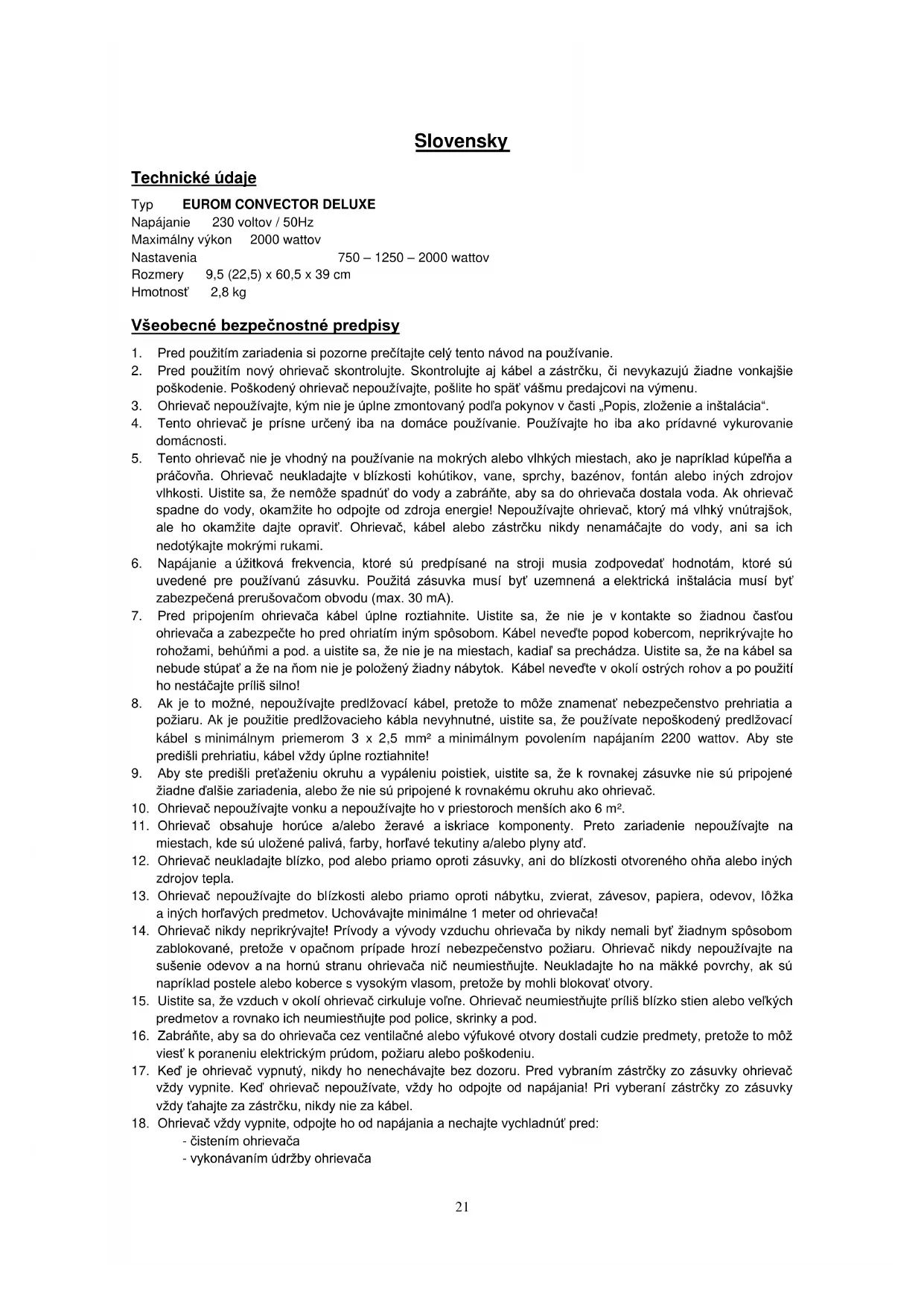 NÁVOD NA OBSLUHU Convector Deluxe Eurom