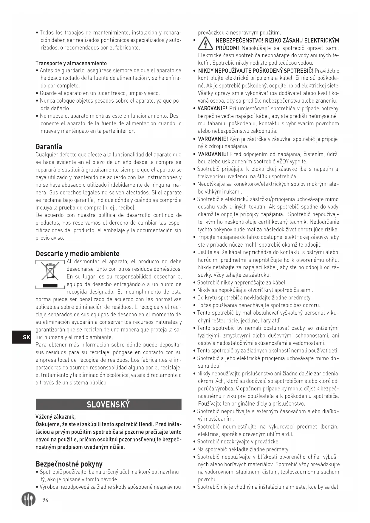 - VAROVANIE! Všetky vetracie otvory na spotrebiči udržiavajte bez prekážok. Špeciálne bezpečnostné pokyny