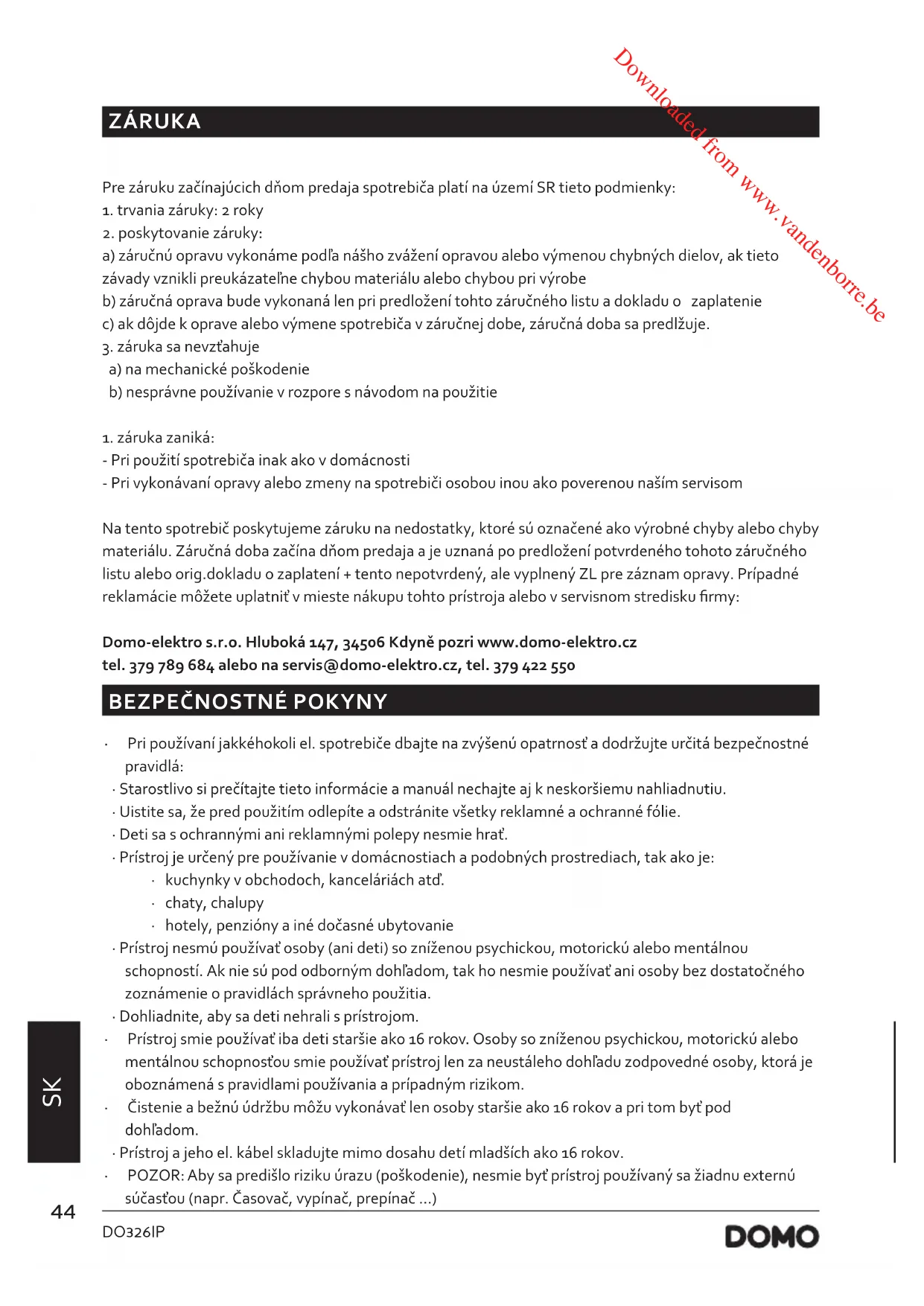NÁVOD NA OBSLUHU DO326IP DOMO