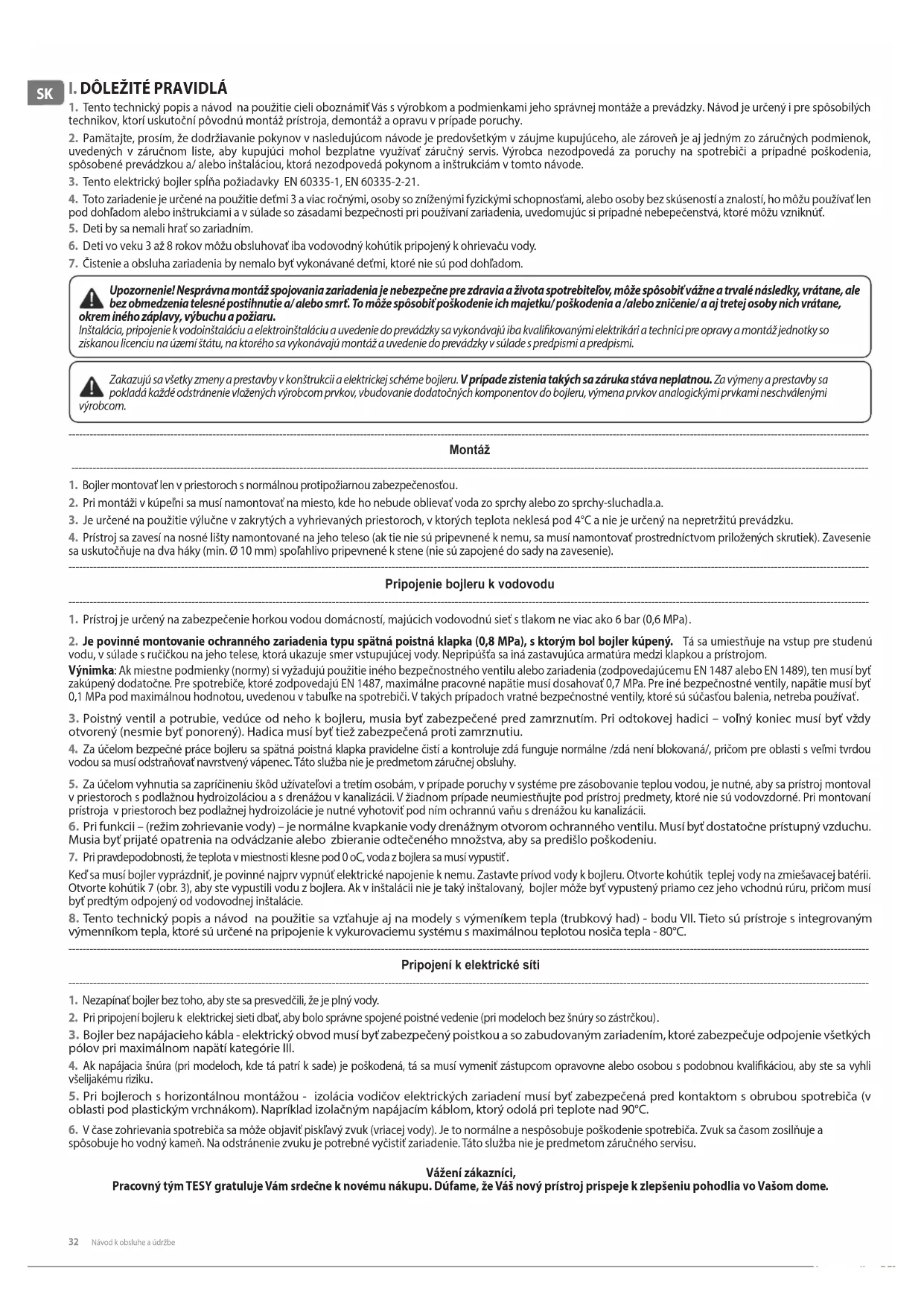 1. Bojler montovať len v priestoroch s normálnou protipožiarnou zabezpečenosťou