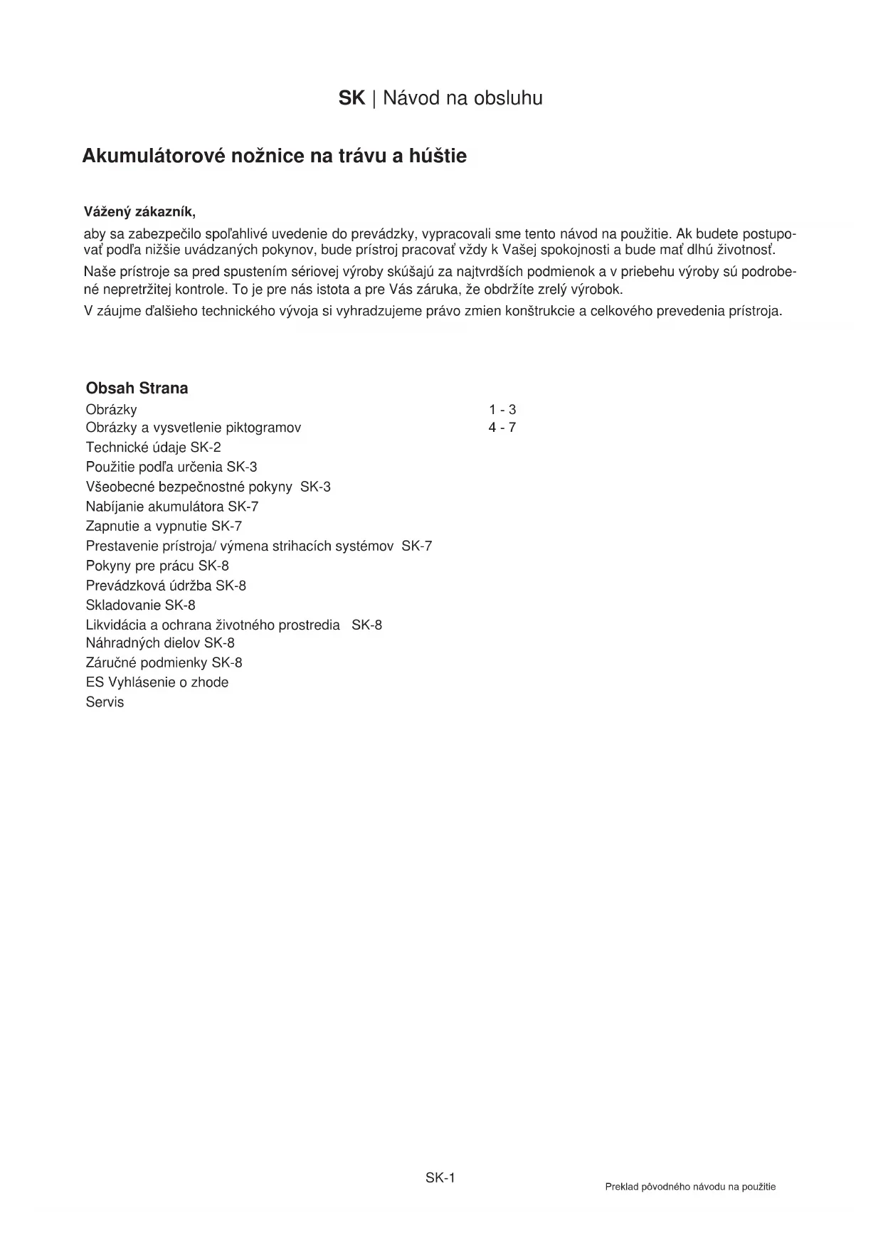 Návod na obsluhu - Preklad pôvodného námodu na použitie Akumulátorové nožnice na travu a hustie