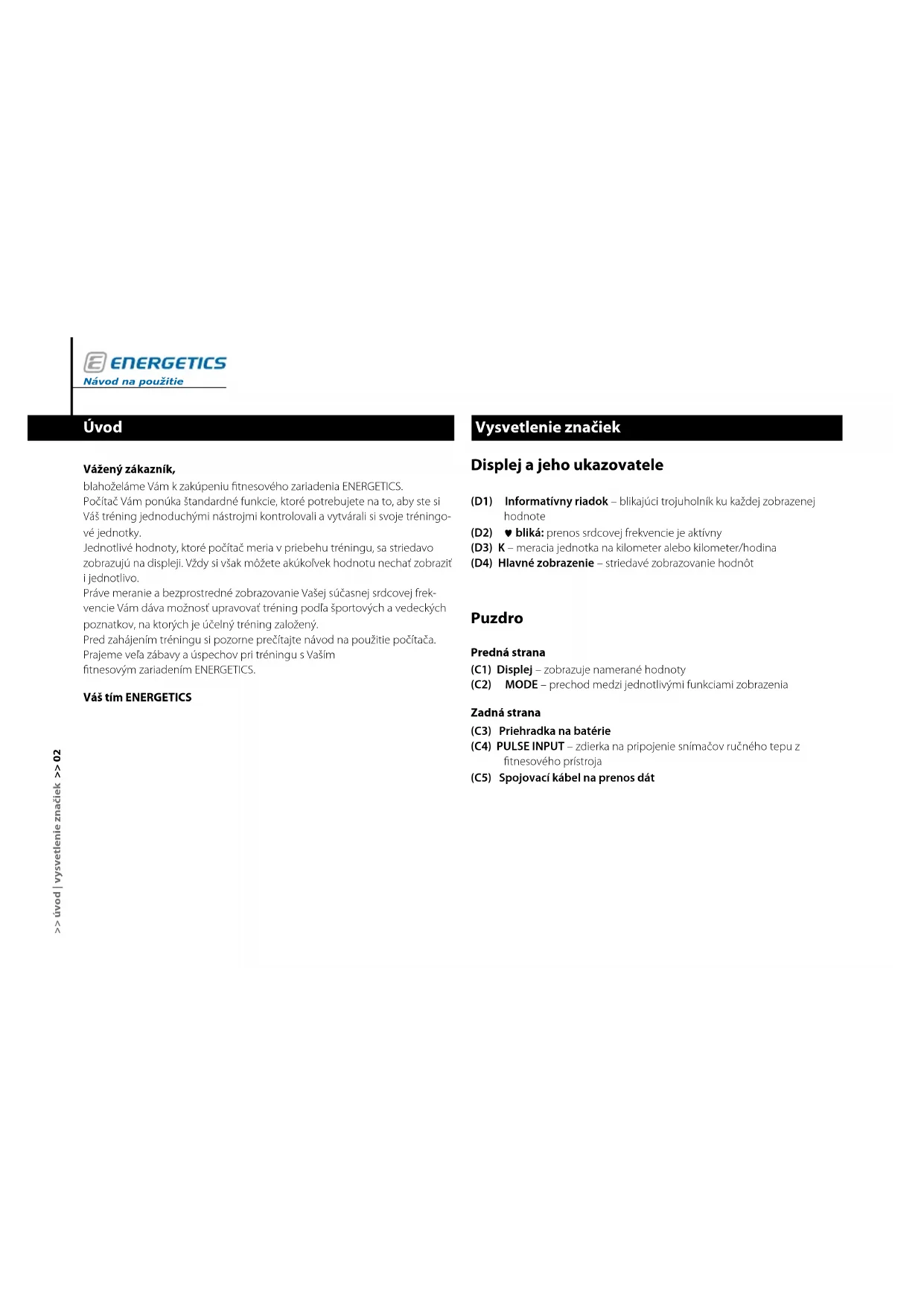 NÁVOD NA OBSLUHU Exercise Monitor E201 Energetics