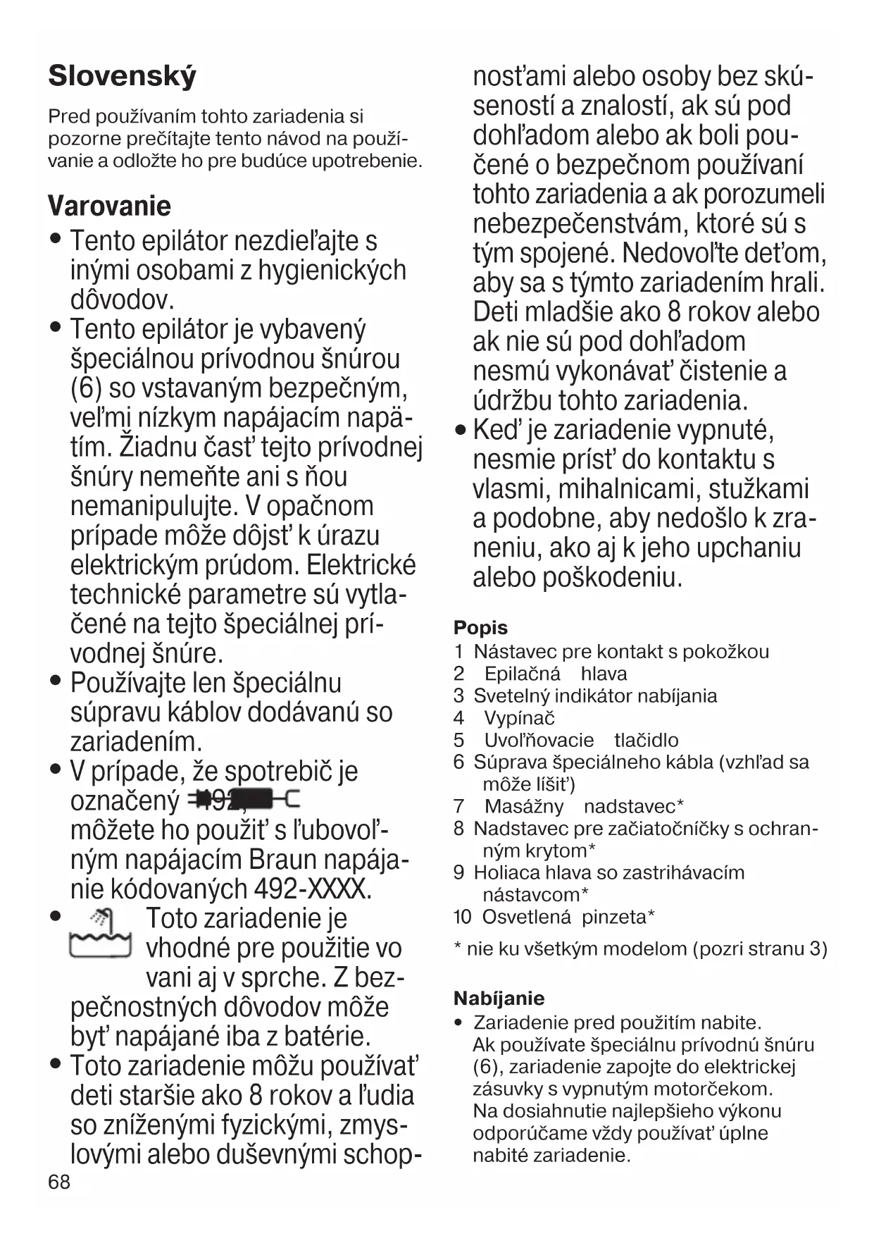 V prípade, že spotrebič je označený 492, môžete ho použiť s ľubovoľ- ným napájacím Braun napája- nie kódovaných 492-XXXX.