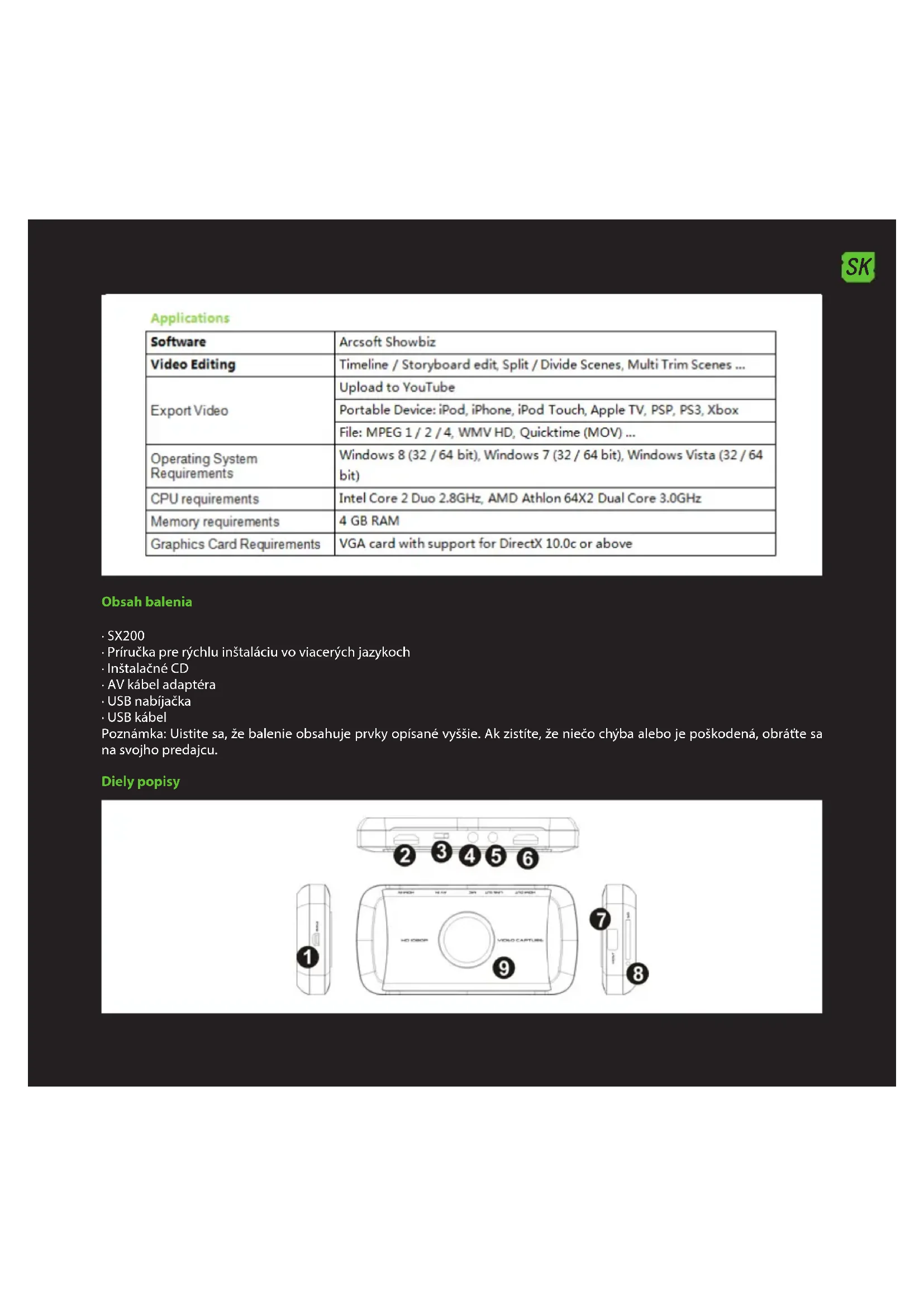 SX200 - Karta na zachytávanie videa KeepOut - Bezplatný návod na obsluhu