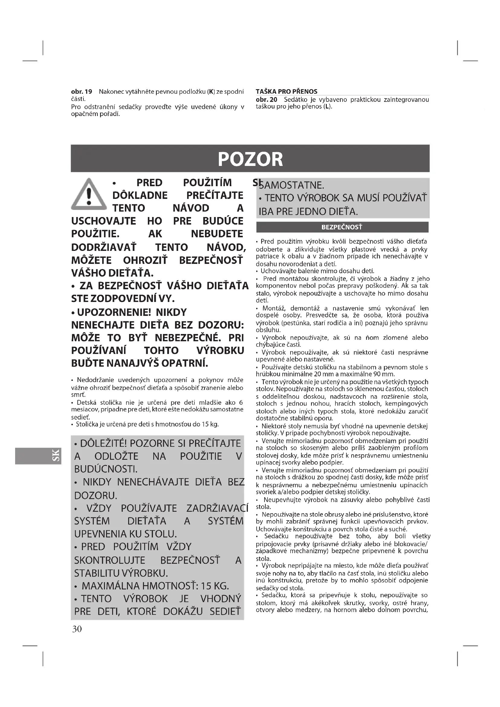- Pri používaní detskej stoličky pripevnenej k stolu sa uistite, že sa stôl neprevrhne.