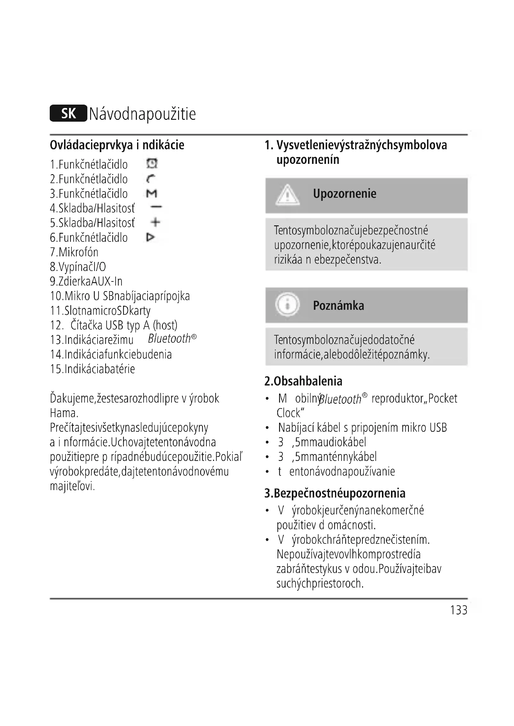 - Upozorňujeme, že dosah funkcie Bluetooth je max. 10 mbez prekážok, ako sú steny,osoby atď.