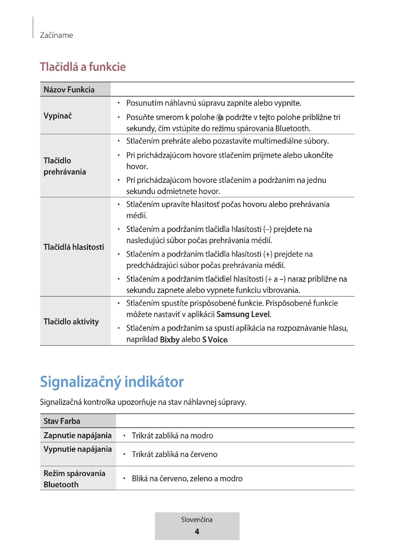 Ak sa náhlavná súprava správne nenabíja, zaneste ju spolu s nabíjačkou do servisného strediska spoločnosti Samsung.Začíname