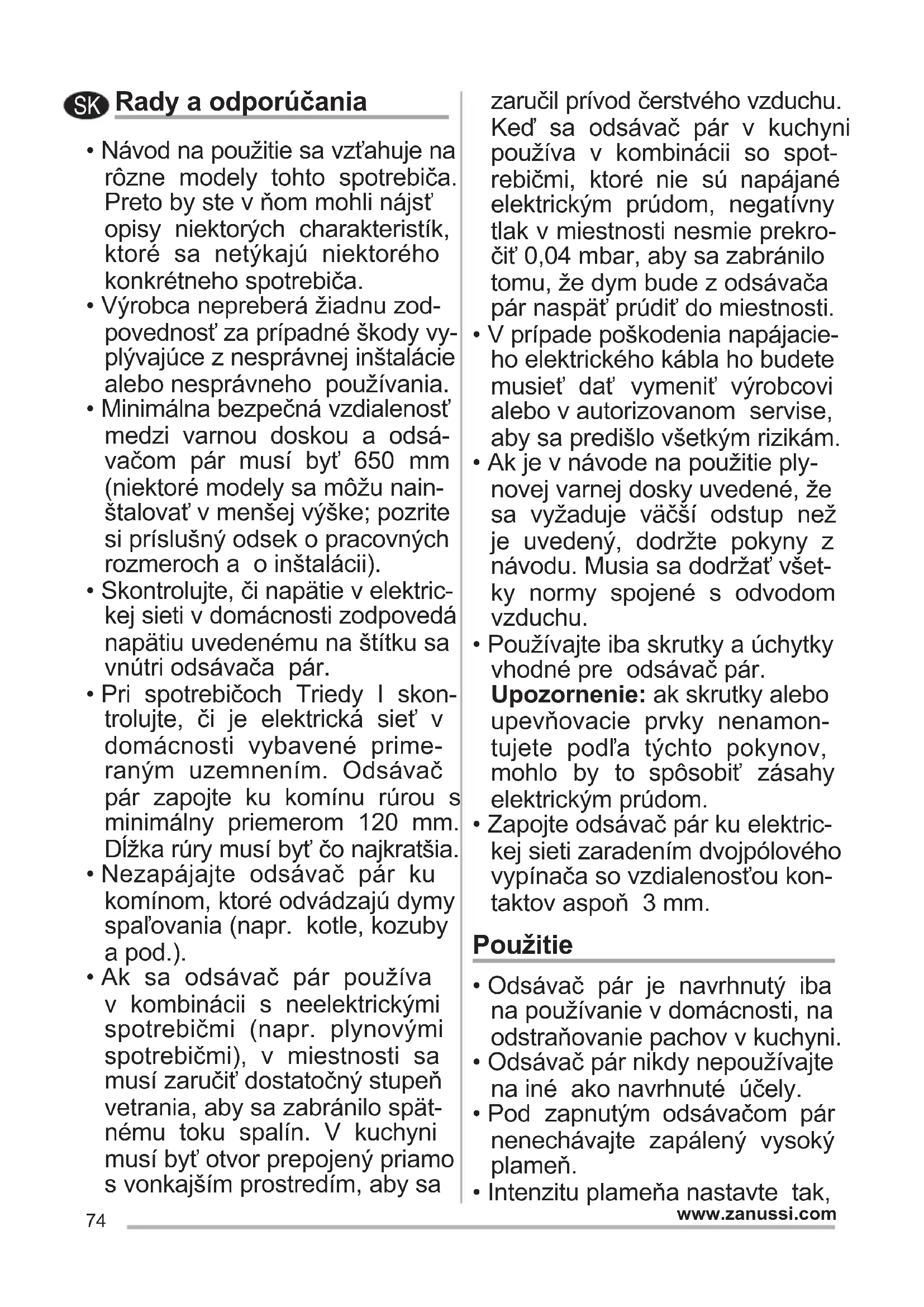 - Nezapájajte odsávač pár ku komínom, ktoré odvádzajú dymy spaľovania (napr. kotle, kozuby a pod.).