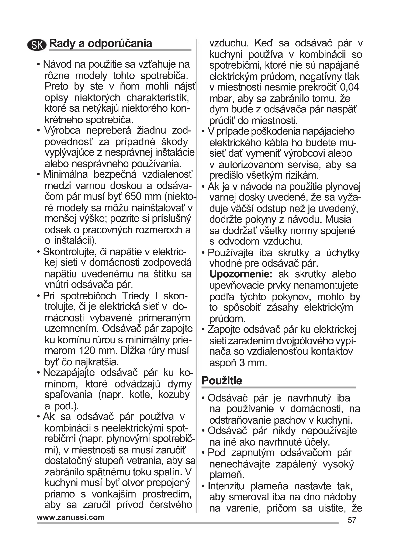 - Nezapájajte odsávač pár ku ko- mínom, ktoré odvádzajú dymy spaľovania (napr. kotle, kozuby a pod.).