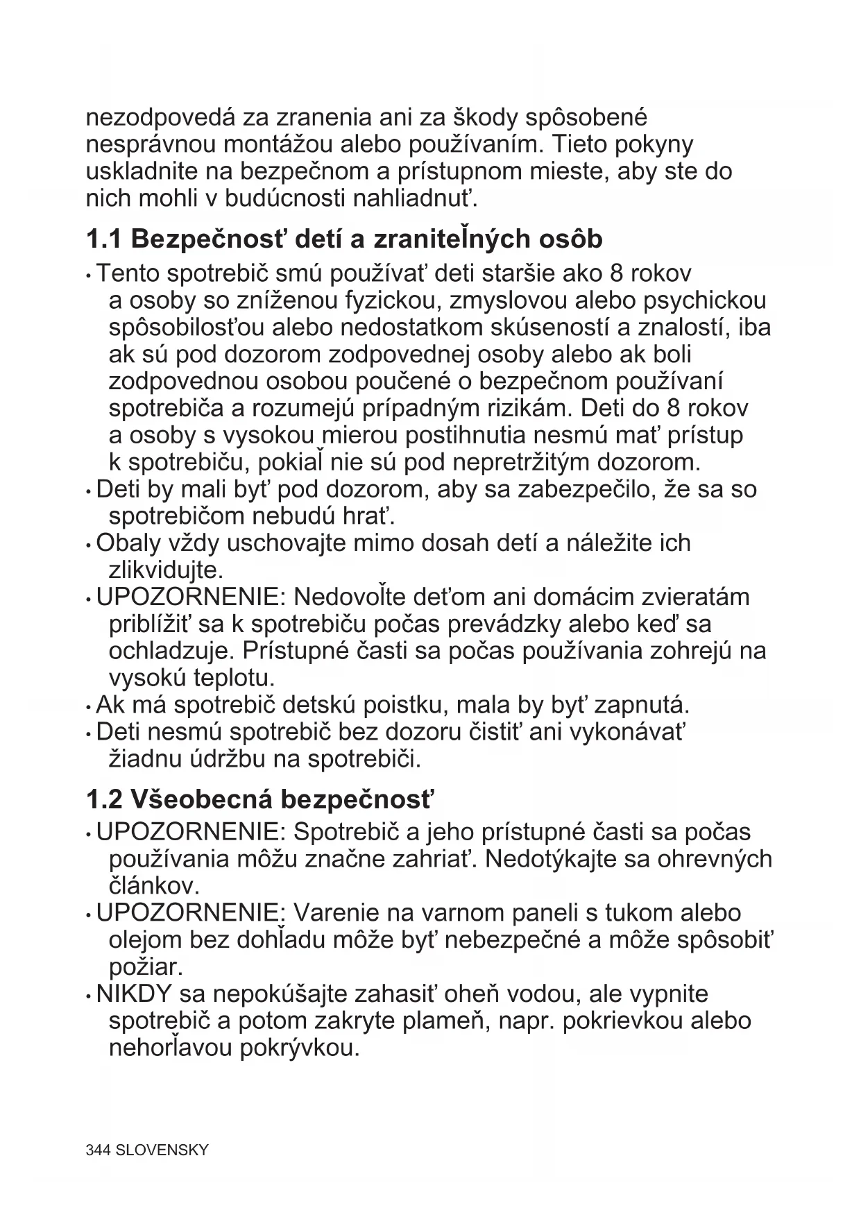 Pred inštaláciou a používaním spotrebiča si pozorne prečítajte priložený návod na používanie. Výrobca SLOVENSKY 343nezodpovedá za zranenia ani za škody spôsobené nesprávnou montážou alebo používaním. Tieto pokyny uskladnite na bezpečnom a prístupnom mieste, aby ste do nich mohli v budúcnosti nahliadnuť.