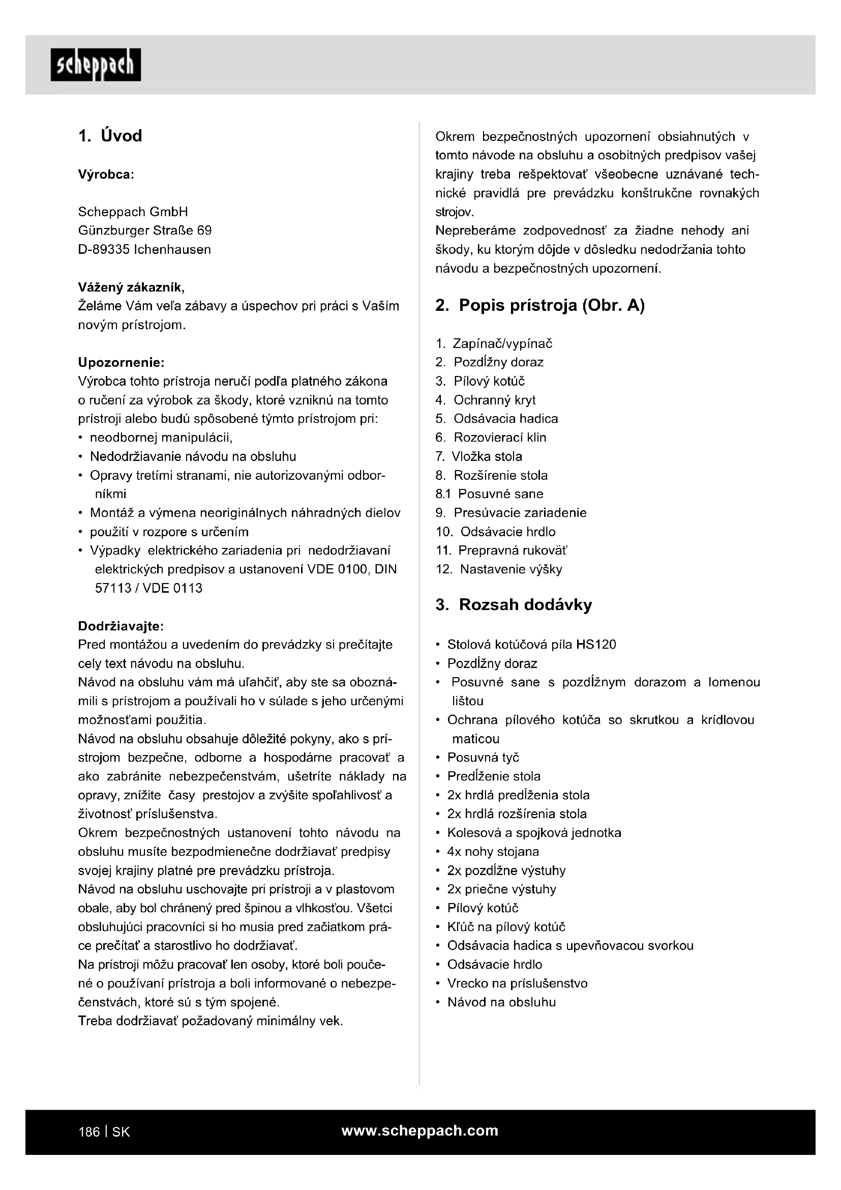 HS120 - Píla SCHEPPACH - Bezplatný návod na obsluhu