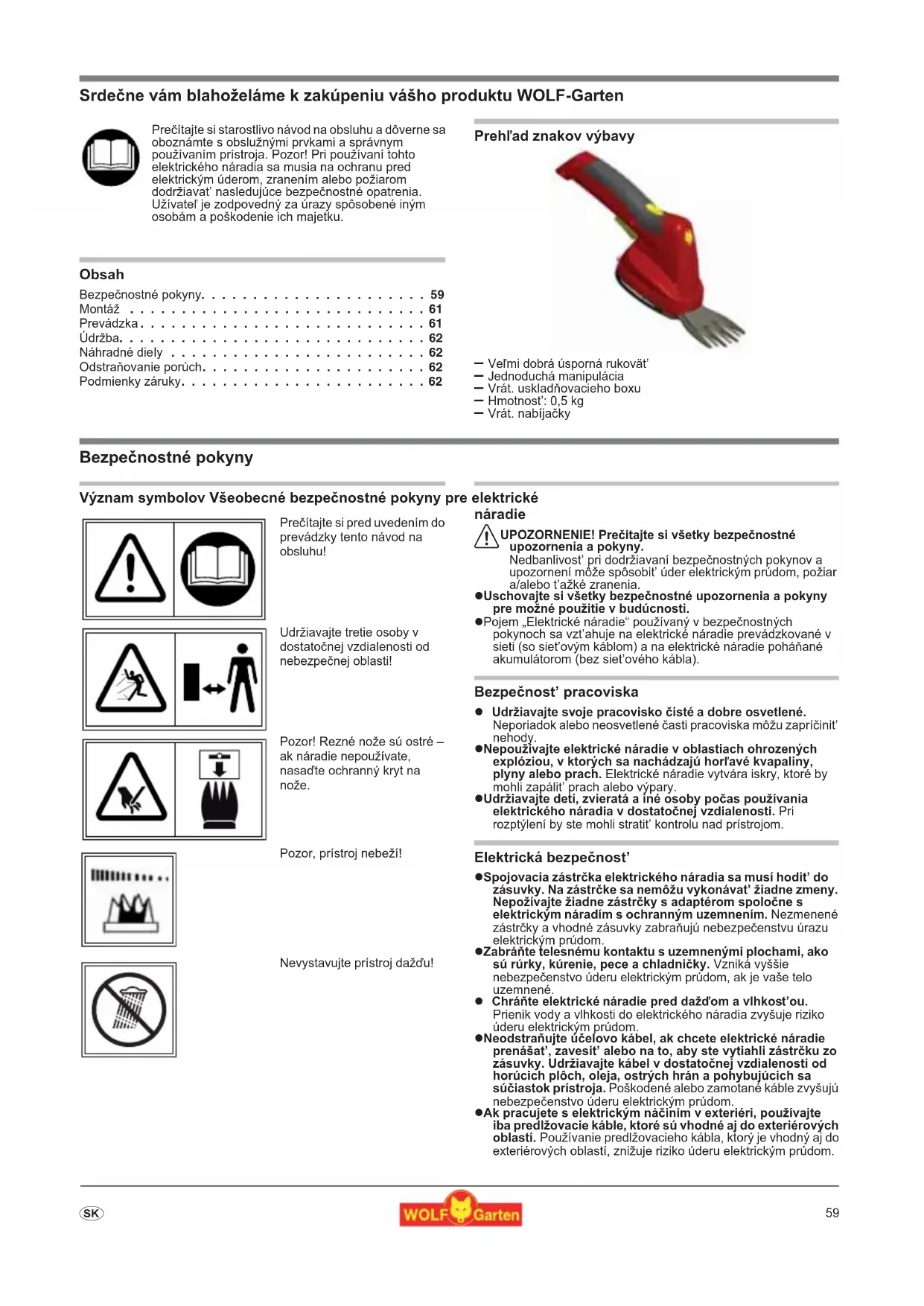- Srde=ne vám blahoželáme k zakúpeniu vášho produktu WOLF-Garten Obsah Bezpenostné pokyny p. 59