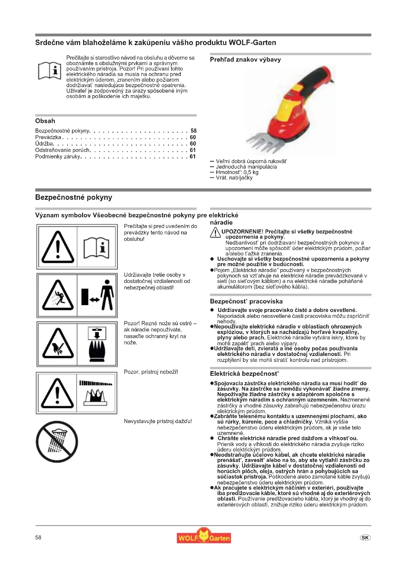 - SrdeXne vám blahoželáme k zakúpeniu vášho produktu WOLF-Garten Obsah Bezpenostné pokyny p. 58