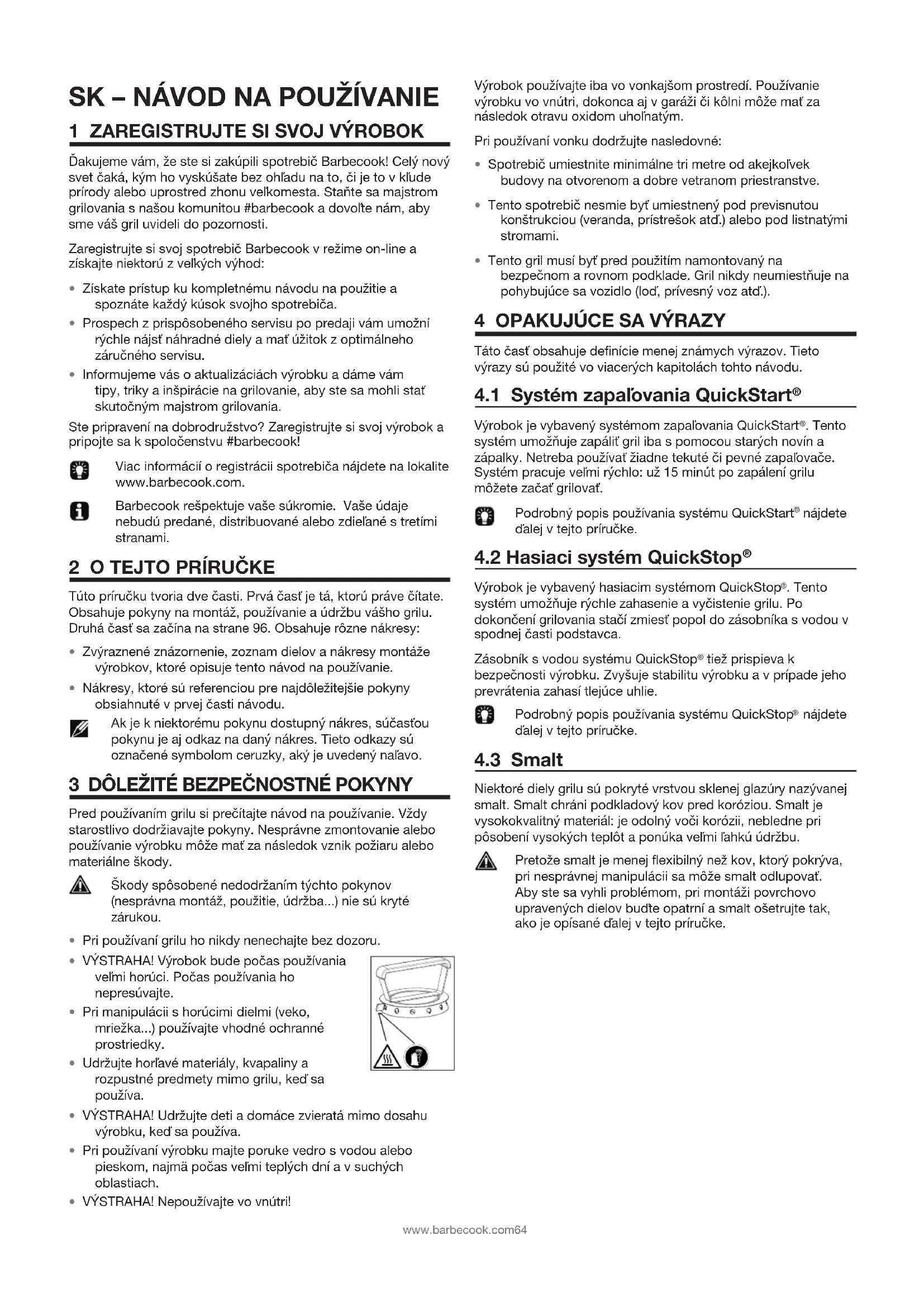 časti tejto príručky alebo na lokalite www.barbecook.com je pod vyobrazeniami rozloženého zariadenia uvedený zoznam všetkých referenčných čísiel. Ak ste si svoje zariadenie zaregistrovali v režime on-line, na konte MyBarbecook budete automaticky nasmerovaný na správny zoznam. V tomto zozname si budete môcť objednať svoje náhradné diely v režime on-line.