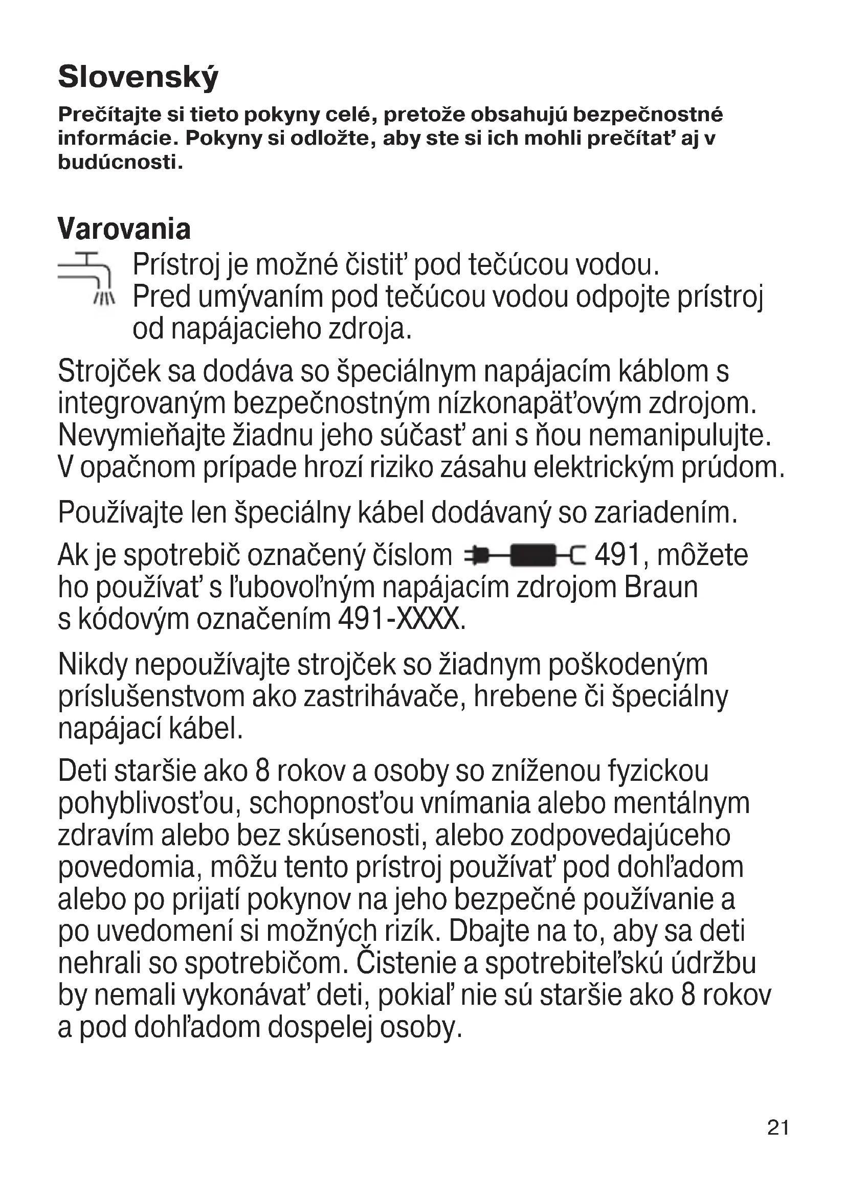 - Hlavicu rukoväte a hrebene možno čistiť pod tečúcou vodou. Oplachujte, kým neodstránite všetky zvyšky. Pred opätovným nasadením nechajte všetky časti úplne vyschnúť.