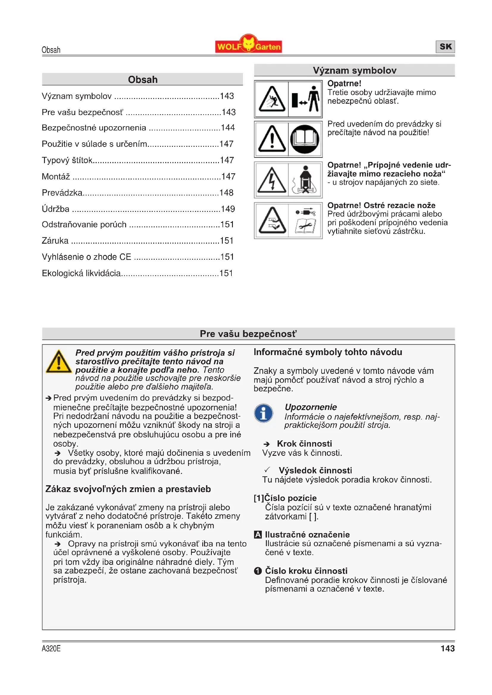 NÁVOD NA OBSLUHU A 320 E Wolf Garten