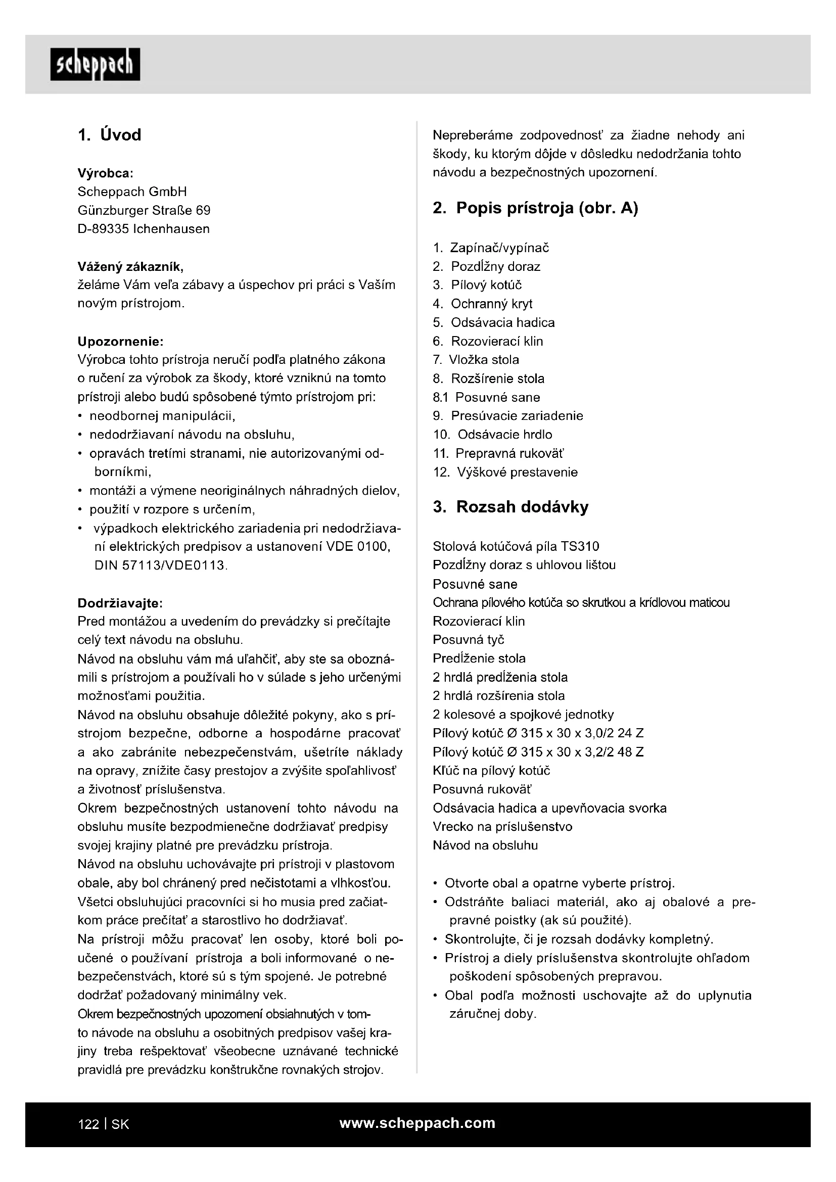 NÁVOD NA OBSLUHU TS310 SCHEPPACH