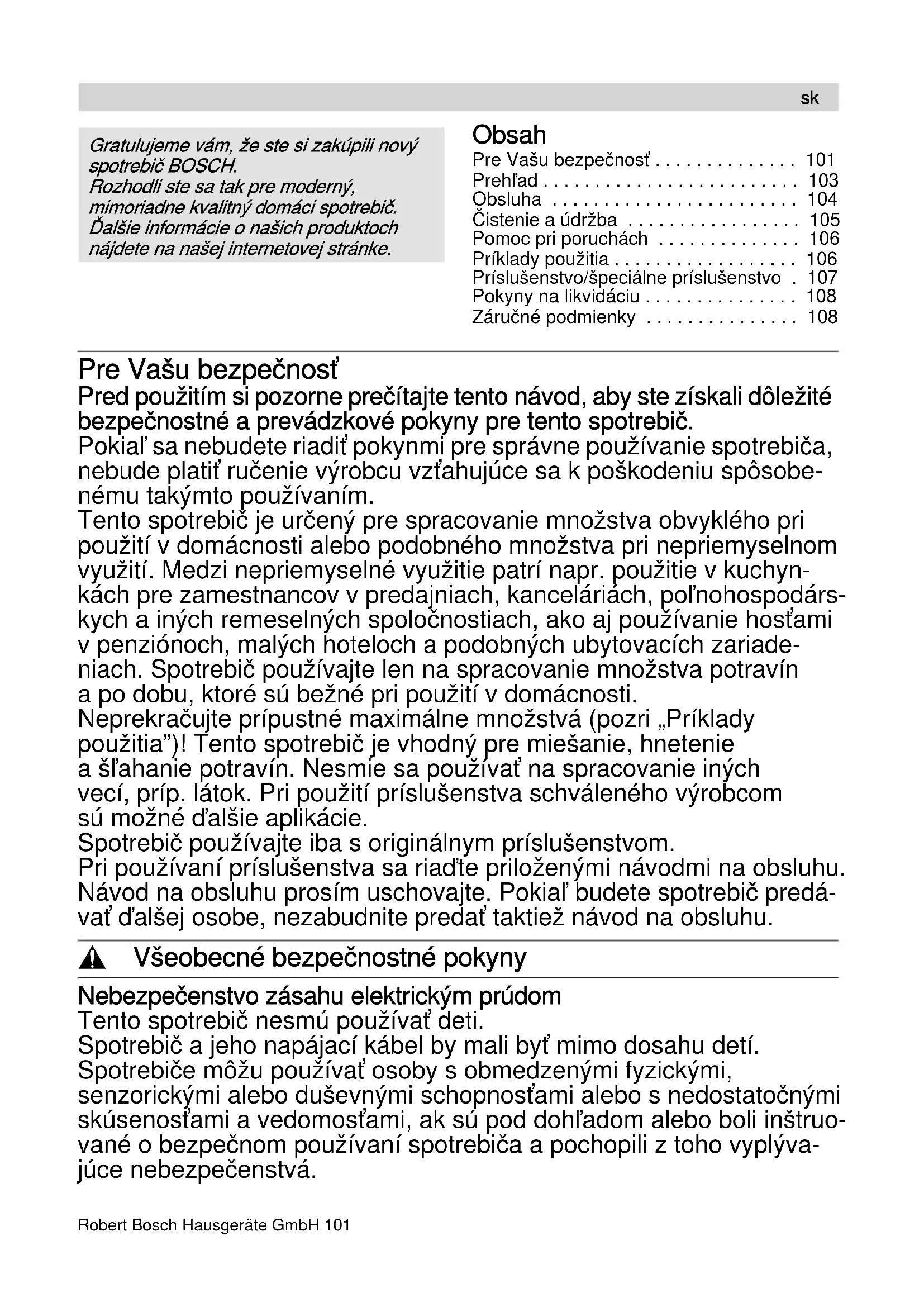 - Změny vyhrazeny.Robert Bosch Hausgeräte GmbH 101 Obsah Pre Vašu bezpečnosť p. 101