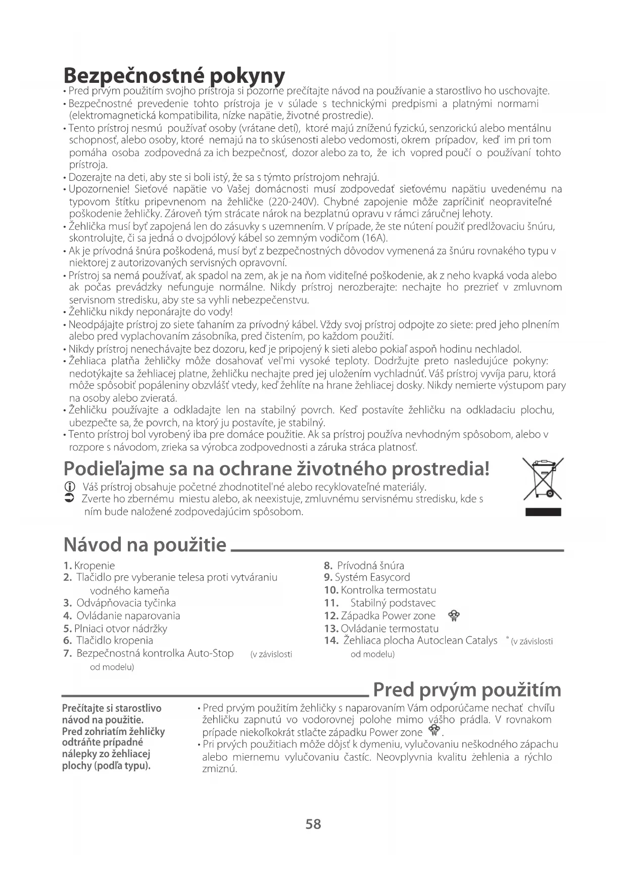 - Pred prvým použitím svojho prístroja si pozorne prečítajte návod na používanie a starostlivo ho uschovajte.
