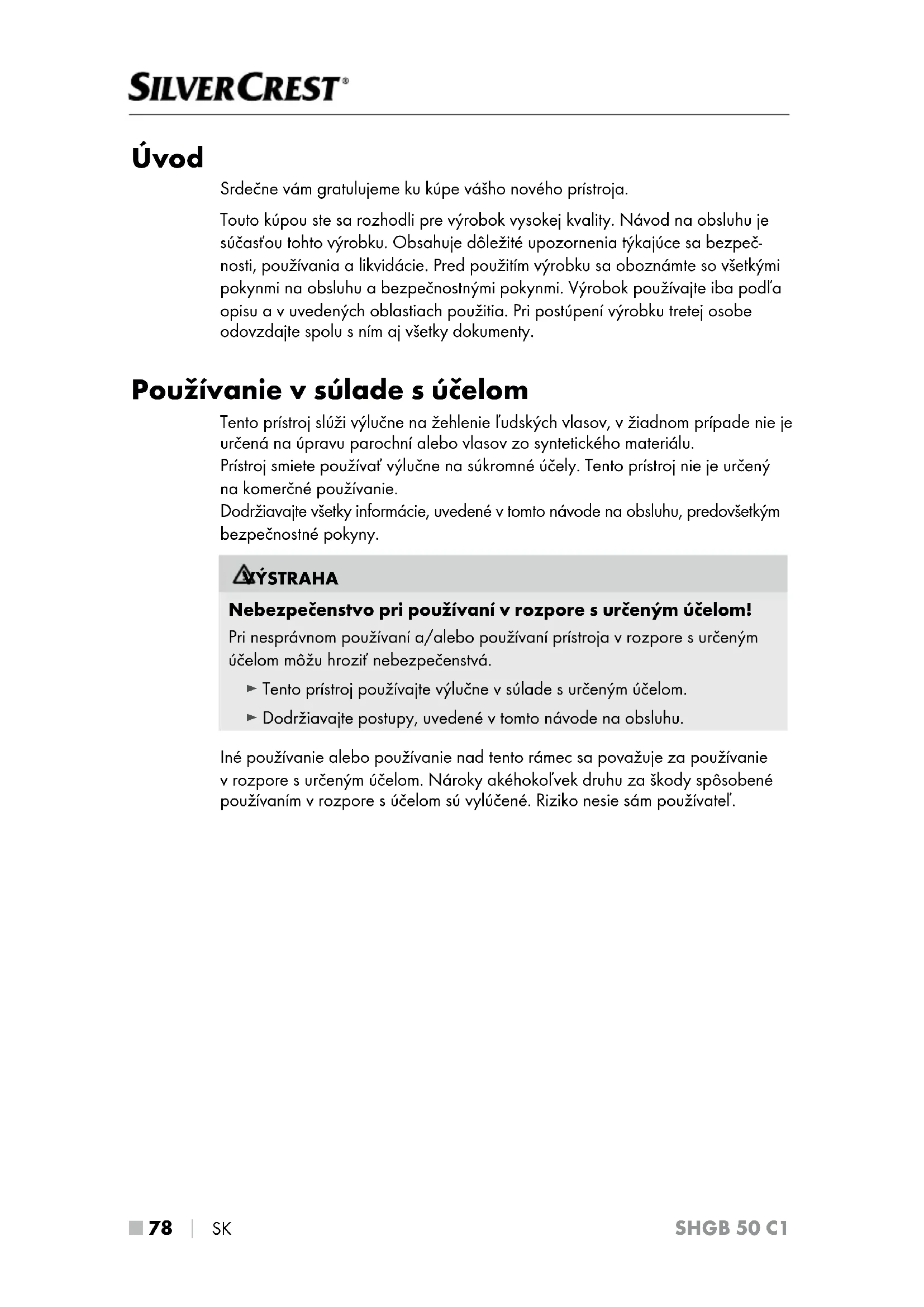 Stiahnite si návod pre váš Kefa na vyrovnávanie vlasov vo formáte PDF zadarmo! Nájdite svoj návod SHGB 50 C1 - SILVERCREST a vezmite svoje elektronické zariadenie späť do rúk. Na tejto stránke sú zverejnené všetky dokumenty potrebné na používanie vášho zariadenia. SHGB 50 C1 značky SILVERCREST.